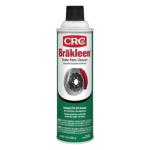 Q: Are there any safety precautions I should take when using CRC Brakleen?A: Yes, when using CRC Brakleen, it is important to use it in a well-ventilated area, avoid inhalation, and keep it away from heat sources as it is classified as flammable. Always follow the safety instructions on the label.