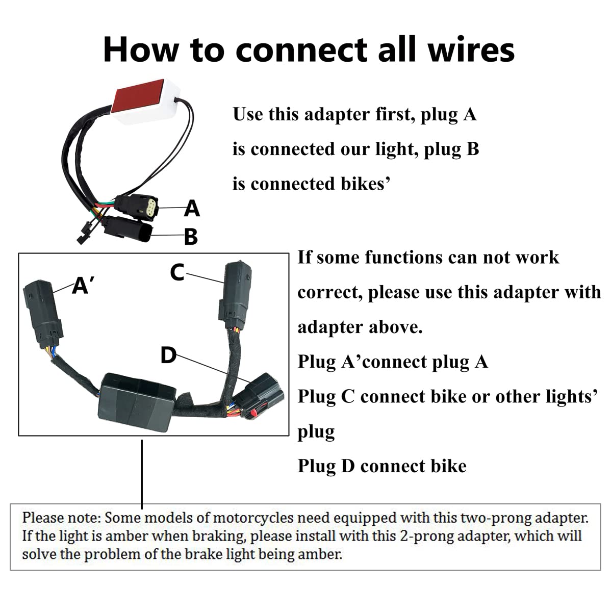 Description:Lease Note That The Only Some Models Of The Motorcycle Need The Two-Prong Adapter If The Light Is Amber When Braking, Please Install The Light With The 2-Prong Adapter, Which Will Solve The Problem Of The Brake Light Being Amber Features:100% Brand Newlens Cover: Clearrunningbrake Light Color: Redturn Signalstrobe Light Color: Amberturn Signal Is Sequential Amber Lightfunction:Running Lightbrake Lightturn Signalstrobe Lightflow Effectfitment:Fit For Harley Touring Models 2014-2022Cvo Limited Flhtkse 2014-2021Electra Glide Standard Flht 2020-2021Electra Glide Ultra Classic Flhtcu 2014-2019Electra Glide Low Ultra Classic Flhtcul 2015-2016Road Glide Fltrx 2021Road Glide Cvo Ultra Fltruse 2015-2016Road Glide Fltrx 2015-2020Road Glide Limited Fltrk 2020-2021Road Glide Special Fltrxs 2015-2021Road Glide Ultra Fltru 2016-2019Road King Flhr 2014-2021Road King Cvo Flhrse6 2014Road King Special Flhrxs 2017-2021Street Glide Cvo Flhxse 2021Street Glide Flhx 2014-2021Street Glide Cvo Flhxse 2015-2020Street Glide Special Flhxs 2014-2021Ultra Limited Flhtk 2014-2021Ultra Limitedlow Flhtk2015Ultra Limited Lowflhtkl2016-2019Package Included:2Pcs Sequential Saddlebag Light + Wiring Harness + Two-Prong Adapter (As The Picture Shown)