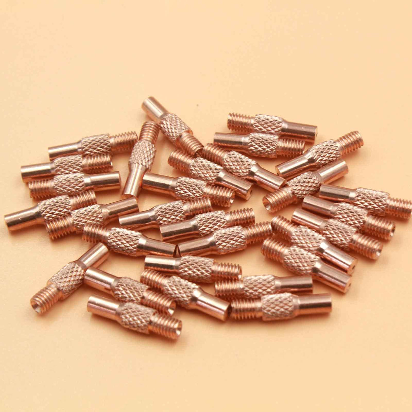 Q: What is the material used for these MIG welding contact tips?A: These MIG welding contact tips are made of high-quality copper, ensuring durability and efficient heat conductivity during welding.