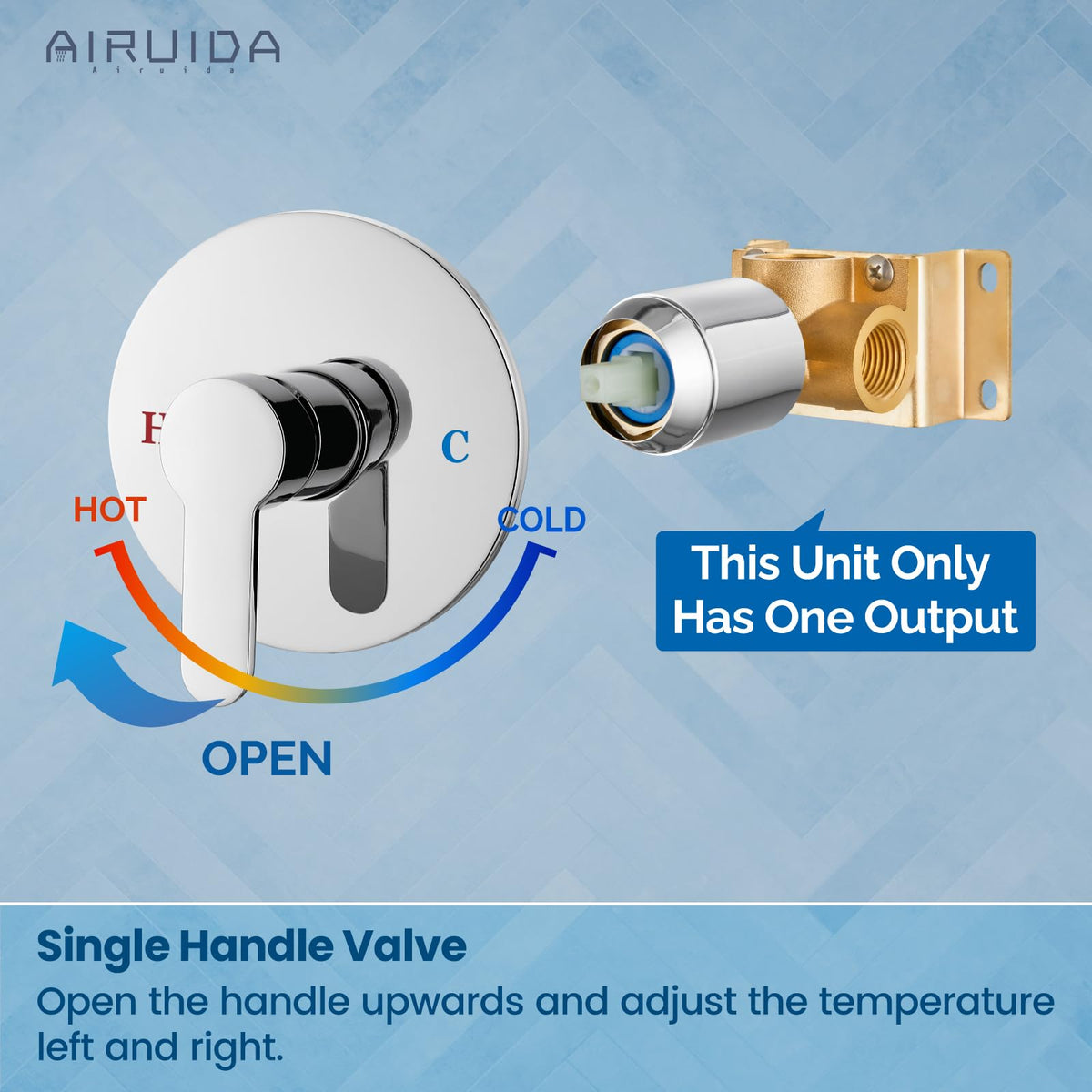 Q: Can I use this valve with a bathtub shower system?A: The Airuida shower valve is designed specifically for single-function shower systems and does not support dual outputs for bathtub shower systems. It is important to ensure compatibility with your existing plumbing before purchasing.