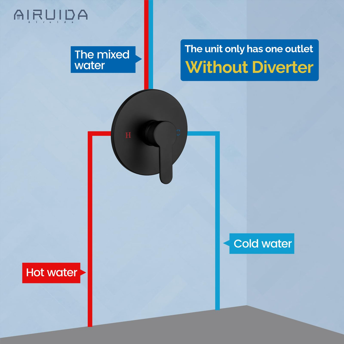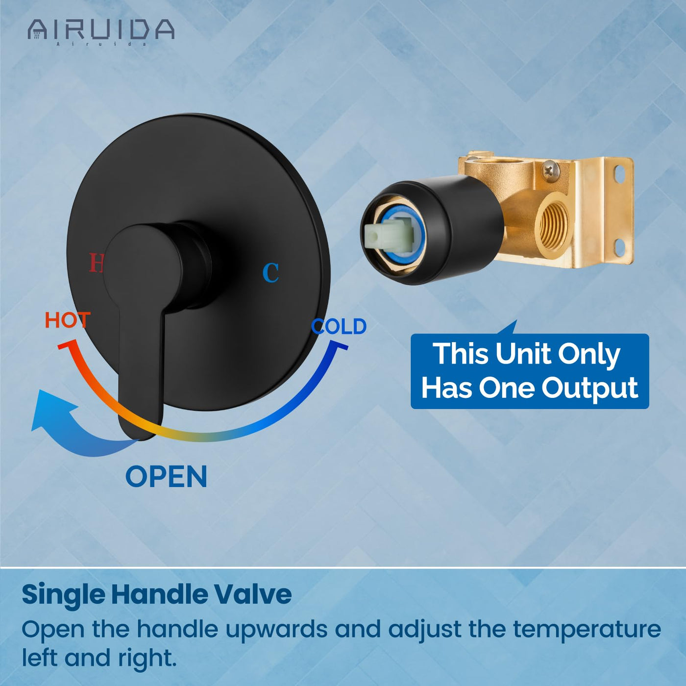 Q: How do I adjust the water temperature with the Airuida Shower Handle?A: The Airuida Shower Handle features a sleek single-function design that allows for easy adjustment of water temperature. Simply turn the handle to achieve your desired temperature for a comfortable shower experience.