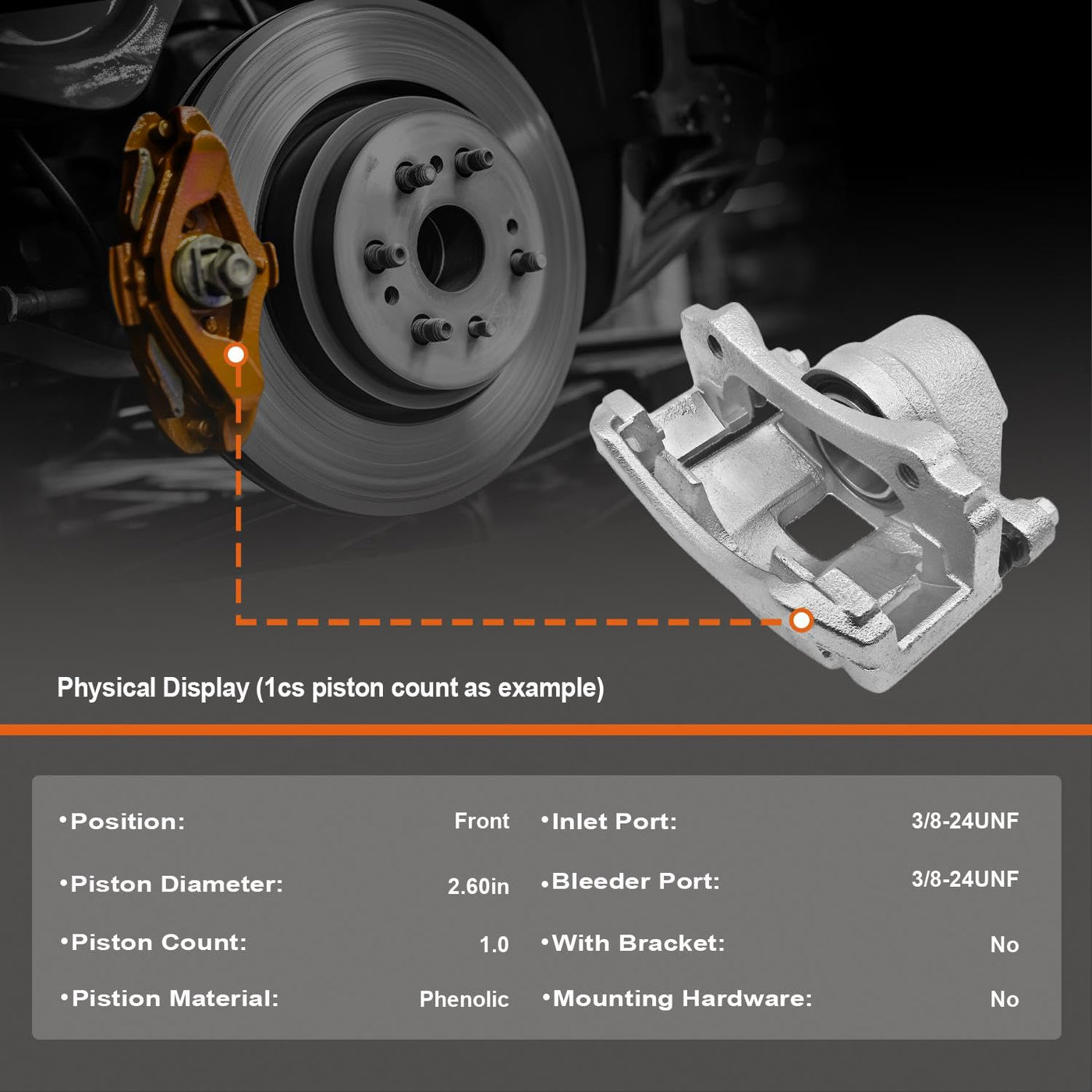 Anpulsero Front Disc Brake Caliper Assembly Without Bracket Compatible with Select Jeep Models - 1990-2006 Wrangler, 1990-2001 C