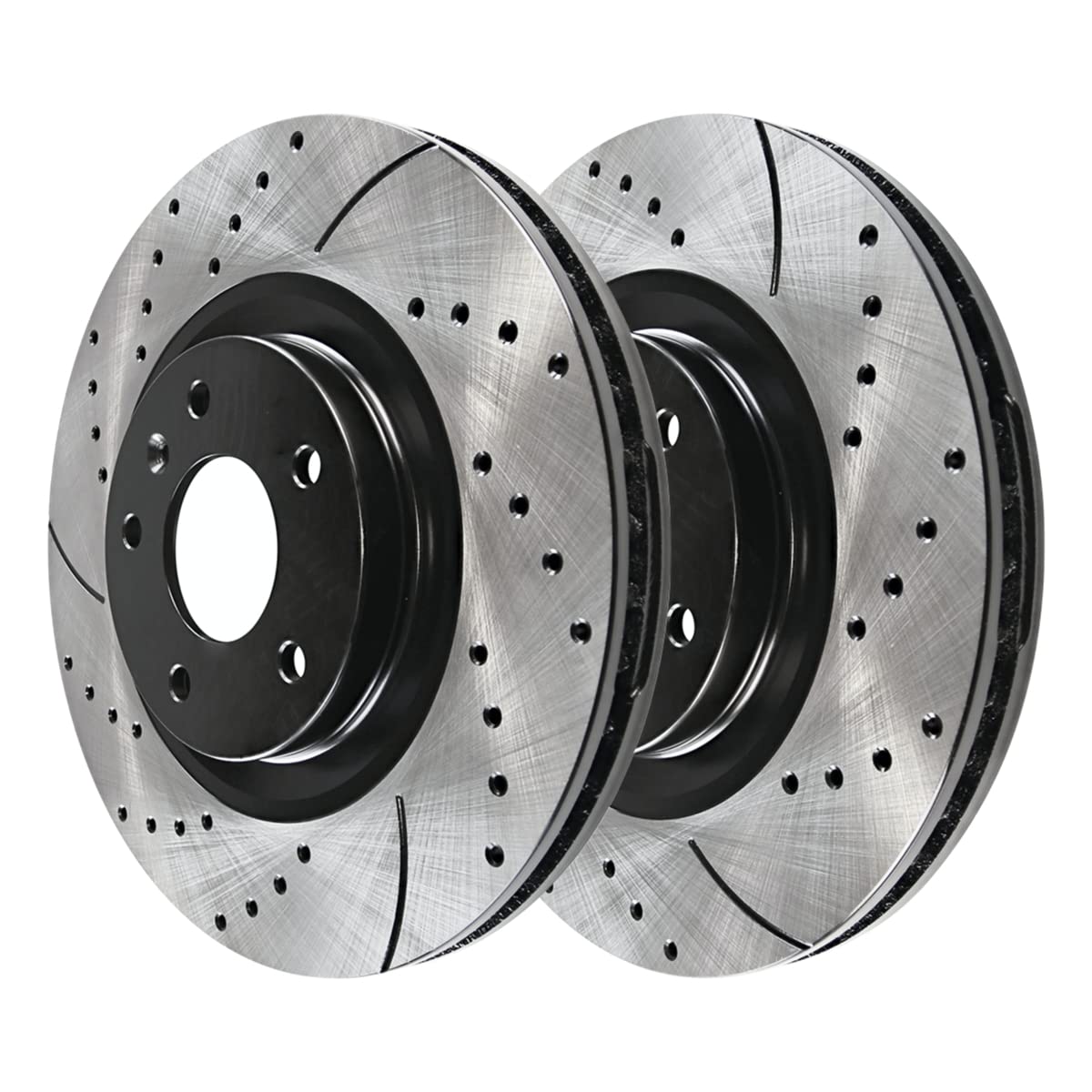 Q: What are the benefits of using drilled and slotted rotors?A: Drilled and slotted rotors enhance braking performance by improving heat dissipation and reducing dirt build-up. This design helps in maintaining consistent braking power and reduces the risk of brake fade, especially under high-temperature conditions.
