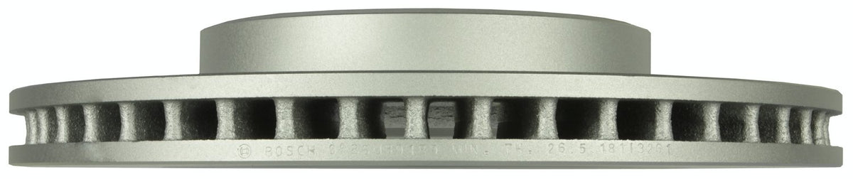 Product DescriptionBosch QuietCast is a name you can depend on, with minimum tolerance levels and innovative materials that ensure the very highest quality and brake judder, noise, vibration, and harshness free operation. All QuietCast rotors are factory mill precision balanced, which disperses the weight evenly, and allows for smooth, safe stops with no pedal pulsation. Performance is ensured by OEM style vane configurations that provide more efficient heat dissipation, reduced vibration for quieter operation, and extended rotor life. Aluminum/Zinc coating protection prevents rust and corrosion, extending the life of the rotor while providing a clean look for today's open wheels. OEM style ABS tone rings (on required applications) provide trouble free operation of Antilock Brake and Traction Control systems. Every Bosch QuietCast rotor features an engraved discard thickness, that lets you know when the rotor has reached its useful life, and an on-the-part Bosch brand name, so you can be confident you are receiving an authentic Bosch product.Amazon.comBosch Brake RotorsToday, one of every three Asian, Domestic, and European vehicles on the road in North America include Bosch braking components. That is because Bosch has been a key player in the braking industry since its first brake system design patent in 1936. Bosch introduced Antilock Braking technology to the market, as well as Electronic Stability Control systems. Now Bosch brings years of Original Equipment braking experience to the aftermarket with Bosch QuietCast Premium Disc Brake Rotors.Bosch QuietCast Premium Disc Brake Rotors is a name you can depend on. Minimum tolerance levels and innovative materials ensure the very highest quality and prevent brake judder, noise, vibration, and harshness. Rely on the experience that Bosch brings with over 70 years of Original Equipment brake manufacturing. QuietCast - The Science Behind the SilenceBosch QuietCast Brake Rotors utilize vehicle specific castings. The heat flow casting process produces superior G3000, GG20, GG15, and HC (high carbon) casting. Bosch casting provide strength and durability not found in competitive products. While competitors may provide a low cost product, their casting may crack and may have poor durability. Bosch QuietCast is designed to provide consistent, safe, and long lasting performance. Bosch QuietCast Features Homogeneous heat flow Superior heat dissipation Safe, consistent performance Superior noise dampening characteristics Designed for long life Precision balanced: Insures smooth operations Industry low run-out and DTV specifications: Smooth pedal feel with no pulsation Heat flowing castings: Consistent wear for long life and quiet operation Original Equipment manufacturing style vane configuration: Heat reduction extends rotor life Factory engraved edge code: Allows proper identification and discard specification Premium clean look coating protection: Prevent rust and corrosion, part number specific ABS sensor rings included (on required applications): Trouble free ABS/TCS operation