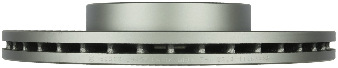 Product DescriptionBosch QuietCast is a name you can depend on, with minimum tolerance levels and innovative materials that ensure the very highest quality and brake judder, noise, vibration, and harshness free operation. All QuietCast rotors are factory mill precision balanced, which disperses the weight evenly, and allows for smooth, safe stops with no pedal pulsation. Performance is ensured by OEM style vane configurations that provide more efficient heat dissipation, reduced vibration for quieter operation, and extended rotor life. Aluminum/Zinc coating protection prevents rust and corrosion, extending the life of the rotor while providing a clean look for today's open wheels. OEM style ABS tone rings (on required applications) provide trouble free operation of Antilock Brake and Traction Control systems. Every Bosch QuietCast rotor features an engraved discard thickness, that lets you know when the rotor has reached its useful life, and an on-the-part Bosch brand name, so you can be confident you are receiving an authentic Bosch product.Amazon.comBosch Brake RotorsToday, one of every three Asian, Domestic, and European vehicles on the road in North America include Bosch braking components. That is because Bosch has been a key player in the braking industry since its first brake system design patent in 1936. Bosch introduced Antilock Braking technology to the market, as well as Electronic Stability Control systems. Now Bosch brings years of Original Equipment braking experience to the aftermarket with Bosch QuietCast Premium Disc Brake Rotors.Bosch QuietCast Premium Disc Brake Rotors is a name you can depend on. Minimum tolerance levels and innovative materials ensure the very highest quality and prevent brake judder, noise, vibration, and harshness. Rely on the experience that Bosch brings with over 70 years of Original Equipment brake manufacturing. QuietCast - The Science Behind the SilenceBosch QuietCast Brake Rotors utilize vehicle specific castings. The heat flow casting process produces superior G3000, GG20, GG15, and HC (high carbon) casting. Bosch casting provide strength and durability not found in competitive products. While competitors may provide a low cost product, their casting may crack and may have poor durability. Bosch QuietCast is designed to provide consistent, safe, and long lasting performance. Bosch QuietCast Features Homogeneous heat flow Superior heat dissipation Safe, consistent performance Superior noise dampening characteristics Designed for long life Precision balanced: Insures smooth operations Industry low run-out and DTV specifications: Smooth pedal feel with no pulsation Heat flowing castings: Consistent wear for long life and quiet operation Original Equipment manufacturing style vane configuration: Heat reduction extends rotor life Factory engraved edge code: Allows proper identification and discard specification Premium clean look coating protection: Prevent rust and corrosion, part number specific ABS sensor rings included (on required applications): Trouble free ABS/TCS operation
