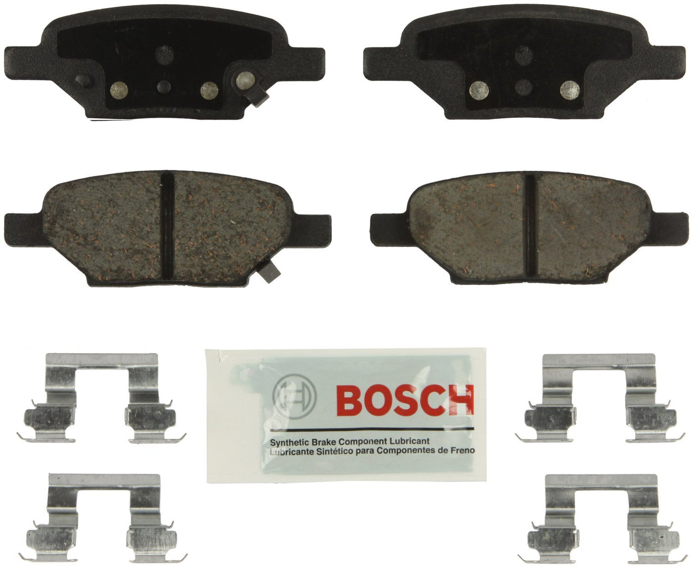 Bosch Blue Disc Brake Pads were created for the everyday driver, and benefit from the same robust testing and engineering processes as our premium braking line. Bosch Blue offers advanced, platform specific friction formulations for optimal performance. Blue delivers superior noise dampening capabilities with OE-style multi-layer shims. Rust inhibitive coating prevents the formation of rust and corrosion which can lead to pad degradation and noisy braking. OE design slots and chamfers deliver superior braking performance and efficient, quiet stops. Precision manufactured to strict tolerances for guaranteed fit, and simple, hassle-free installation. Supplied with synthetic lubricant for reduced resistance on sliding contact points. Set includes brake pads and hardware for 1 axle (2 wheels). NOTE: Pads come wrapped in a protective blue shop towel within the box.