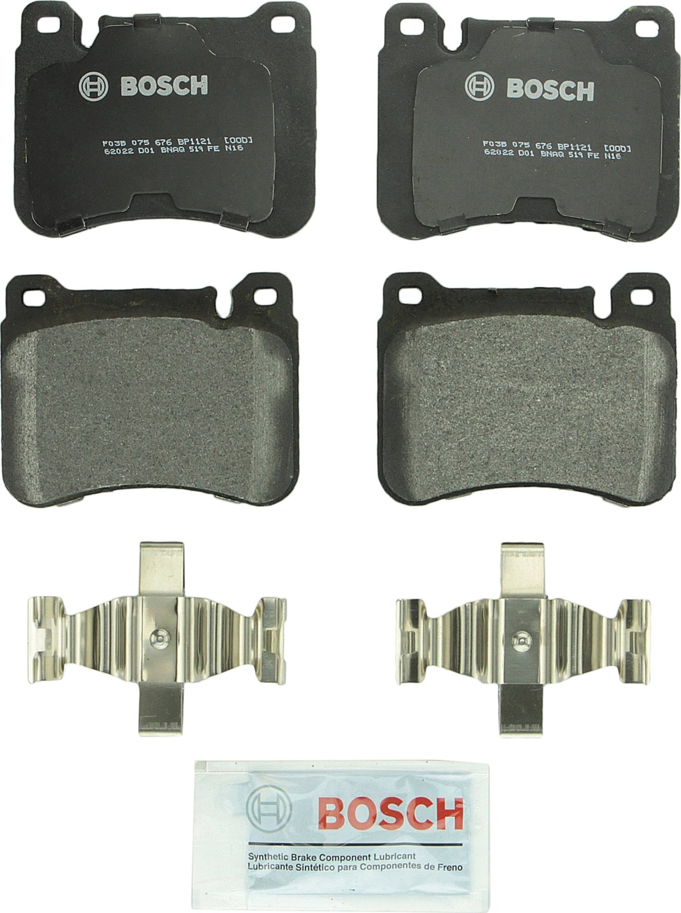 Amazon.comToday, one of every three Asian, Domestic and European vehicles on the road in North America includes Bosch braking components. Thats because Bosch has been a key player in the braking industry since applying for its first brake system design patent in 1936. Bosch introduced Antilock Braking technology to market, as well as Electronic Stability Control systems. Now Bosch brings over 70 years of OE braking expertise to the aftermarket with Bosch QuietCast Premium Disc Brake Pads. Quiet operation and reliable braking performanceQuietCast raises aftermarket brake pad technology to a whole new level. Employing the industrys best pre-attached, rubber core shims and Molded Shim Technology (on selected applications); QuietCast delivers the quiet operation you expect with the durability and long life that are the hallmarks of all Bosch products. Bosch is the name you can trust every time you put on the brakes. Engineered, Manufactured, Distributed and Backed by BoschBosch is closely involved in every step of the QuietCast process. From a worldwide R&D network with 2,500 associates and nine test tracks, to dedicated engineers that source and rigorously test all friction materials and formulations, QuietCast brake products are manufactured under the same exacting quality standards as OE components and systems. Industry-leading materials with Molded Shim TechnologyClick to view larger The Complete Brake Pad SolutionTheres more to value than just a good price. Value also includes quality, extensive coverage, reliable supply and manufacturer support. And thats just what you get with Bosch. The QuietCast Premium Disc Brake Pad program offers top quality, availability, competitive pricing and full coverage for all makes and models of Domestic, Asian and European automobiles, light trucks and SUVs. Formulations include platform-specific ceramic, semi-metallic and non-asbestos organic (NAO). The Science Behind the SilenceEvery Bosch QuietCast Disc Brake Pad is fitted with the industrys best pre-attached rubber core shim. This shim style is the most predominant type used by OE manufacturers and is exclusively offered by Bosch for the independent aftermarket.The laminated rubber-core shim is heat and pressure cured between two layers of steel (see Figure 1, opposite page). This process ensures the highest quality bonding of the rubber to steel resulting in lower noise, increased strength, and corrosion resistance. Sound vibrations pass through the friction material and backing plate, but are dissipated by the unique rubber core in the shim for remarkable noise dampening. About Molded Shim Technology (MST)At the time of pressing, heat, adhesive and pressure mold the multi-layer shim to the backing plate and friction material creating an integrally molded unit. The shim stays attached throughout the life of the pad; it wont walk or slide on the backing plate, providing maximum stability resulting in quieter shim performance over the life of the pad.Product DescriptionToday, one of every three Asian, Domestic, and European vehicles on the road in North America includes Bosch braking components. That's because Bosch has been a key player in the braking industry since applying for its first brake system design patent in 1936. The Bosch QuietCast line draws on this robust experience to deliver OE quality performance, industry-leading strength and durability, and exclusive innovations including Molded Shim Technology (MST). QuietCast pads feature the industry's best pre-attached OE style multilayer rubber core shims, ensuring the highest quality bond between rubber and steel, for lower noise, increased strength, and superior corrosion resistance. The proprietary Semi-Metallic friction material is meticulously engineered to achieve superior performance, exceptional stopping power, and quiet operation with low dust. Corrosion and rust resistant powder-coated backing plates deliver increased product life. OE style slots and chamfers ensure premium quality, fit, and function. Set includes pads for 1 axle (2 wheels), hardware kit (where available), and synthetic lubricant for reduced resistance on sliding contact points. Compatible with select vehicles (Note: vehicle trim level may affect fitment - verify specific vehicle fitment details with fit checker above).