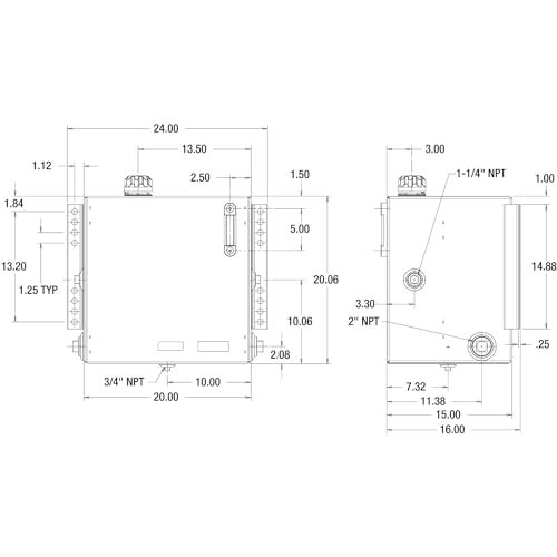 Q: What are the benefits of the internal baffle design in this reservoir?A: The internally baffled design of the Buyers Products SMR25S reservoir minimizes sloshing, aids in fluid cooling, and promotes proper flow, which ultimately enhances the performance and efficiency of hydraulic systems.