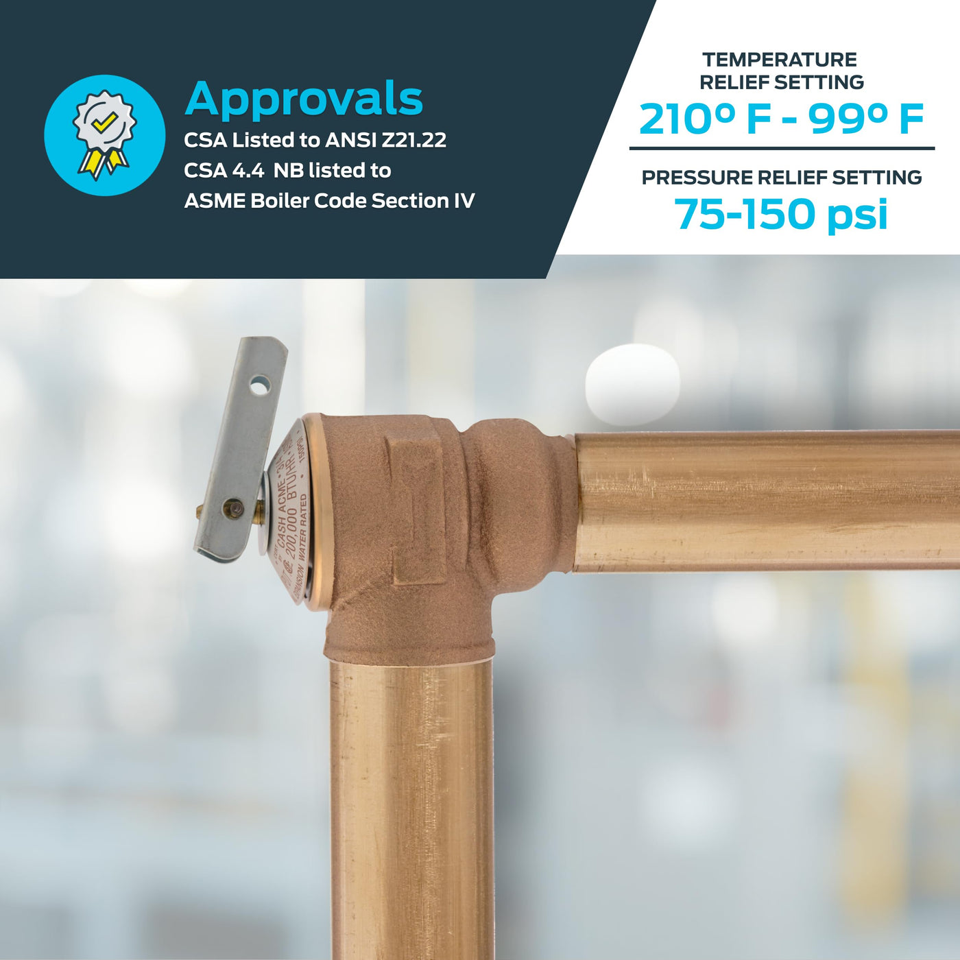 Temperature & pressure relief valve with Extended body. Meets ANSI Z21. 22, CSA 4. 4, and same boiler code sect IV. Connections, bronze body, and silicone seat. Designed for maximum intermittent water pressure. Cash Acme, a trusted history. An innovative future.