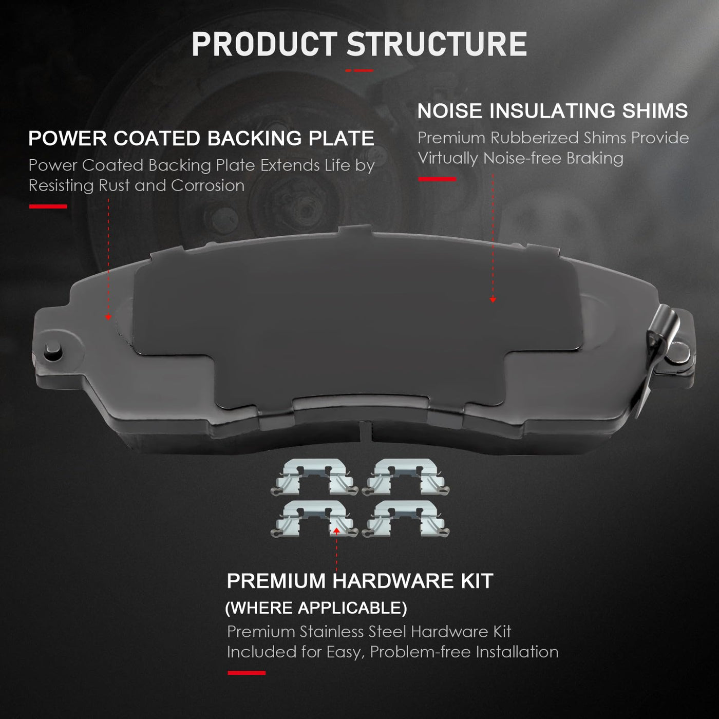 Cciyu D1089 Front Ceramic Disc Brake Pads Kit - 4Pcs For Acura Rdx 2007-2012 & Honda Accord Crosstour 2010-2011