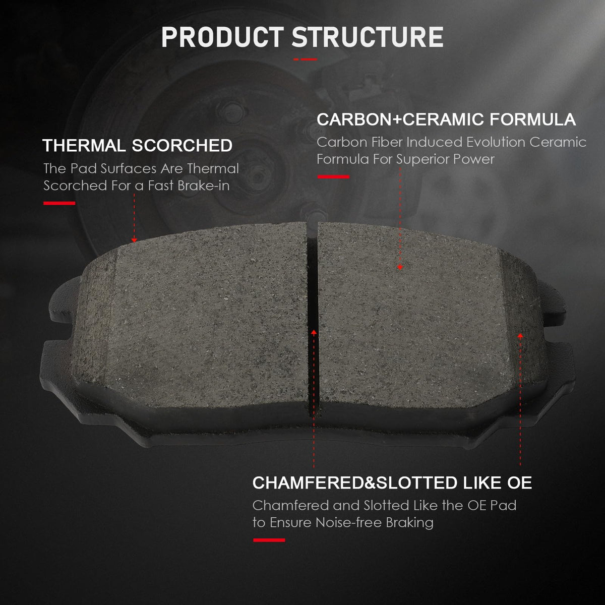 Cciyu D1125 Front Ceramic Disc Brake Pads Kit For Toyota Corolla 2009-2019 4Pcs
