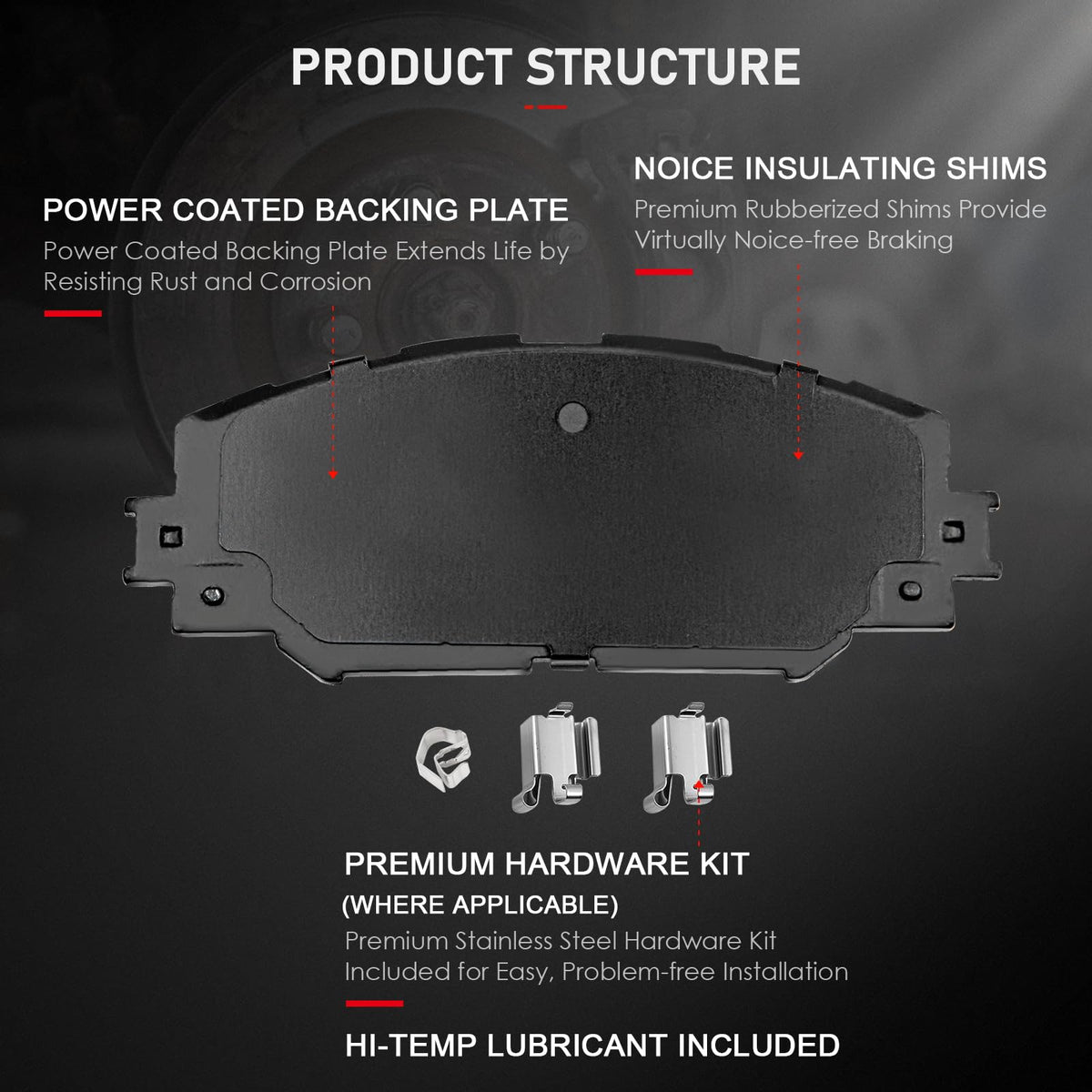 Cciyu D1210 Front Ceramic Brake Pads Kits 4Pcs Fit For 10-12 For Lexus Hs250H,09-10 For Pontiac Vibe,08-15 For Scion Xb,08-14 Fo