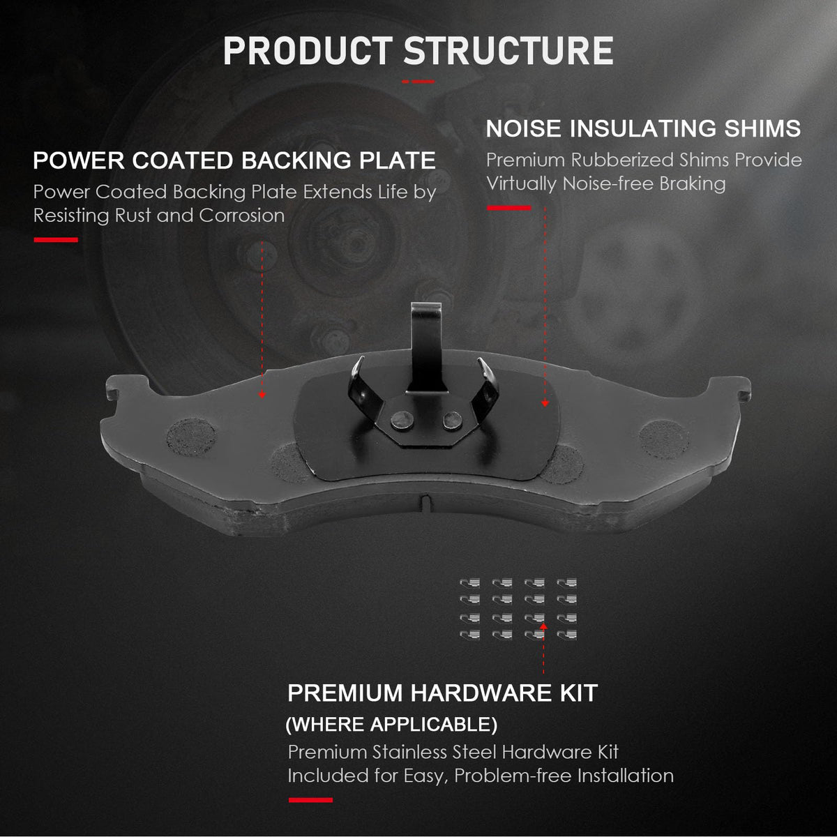 Cciyu D477 Front Ceramic Disc Brake Pads Kit - 4Pcs For Jeep Comanche 90-92, Cherokee 90-01, Grand Cherokee 93-98, Wagoneer 90,