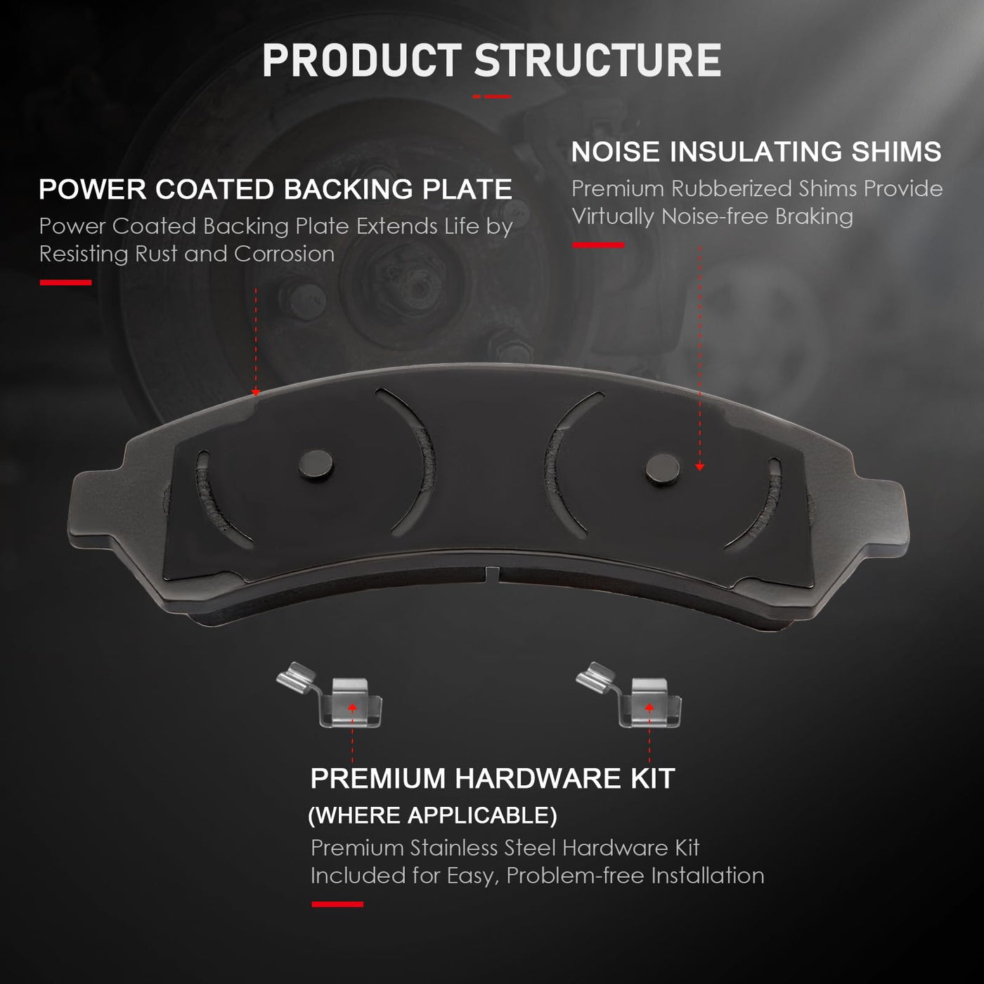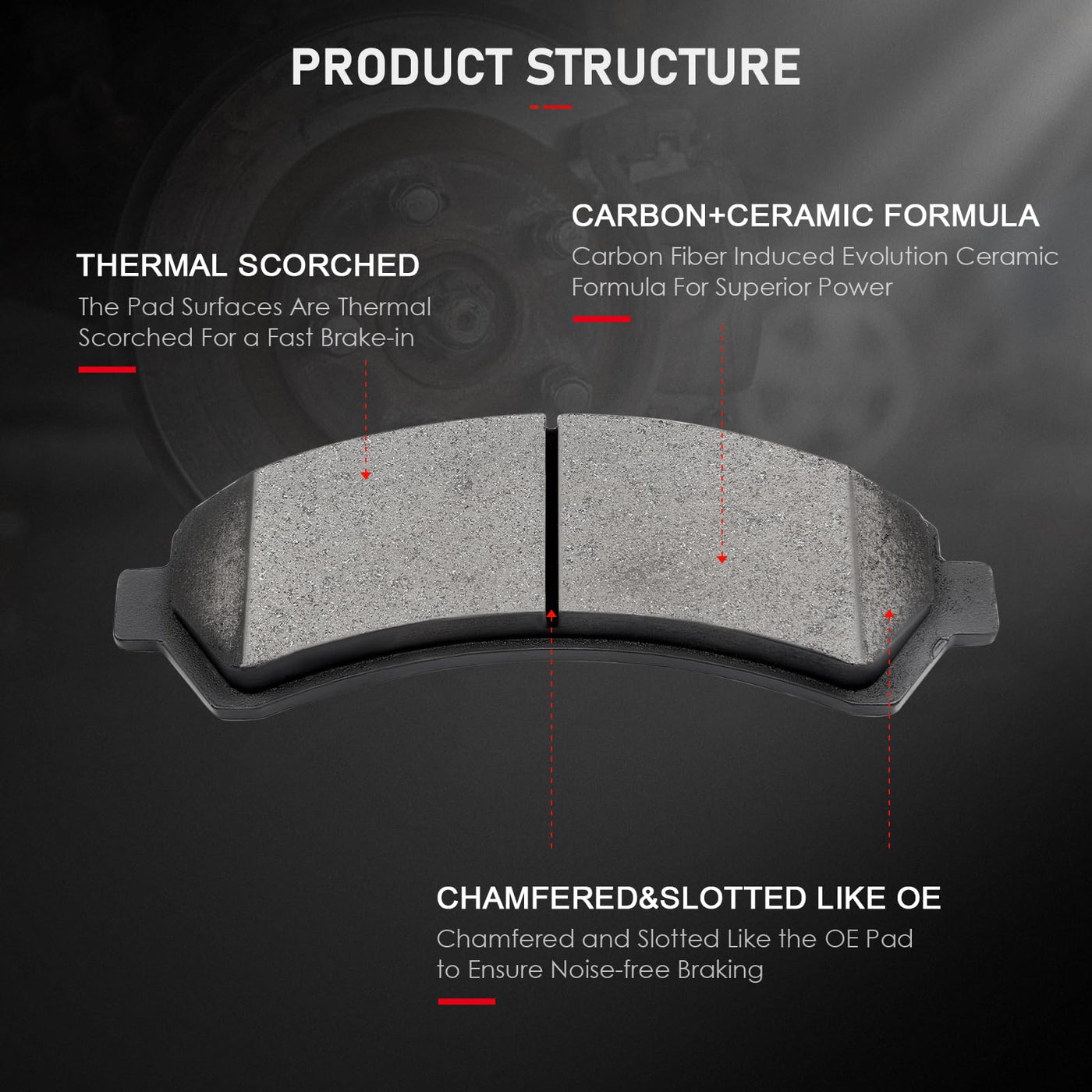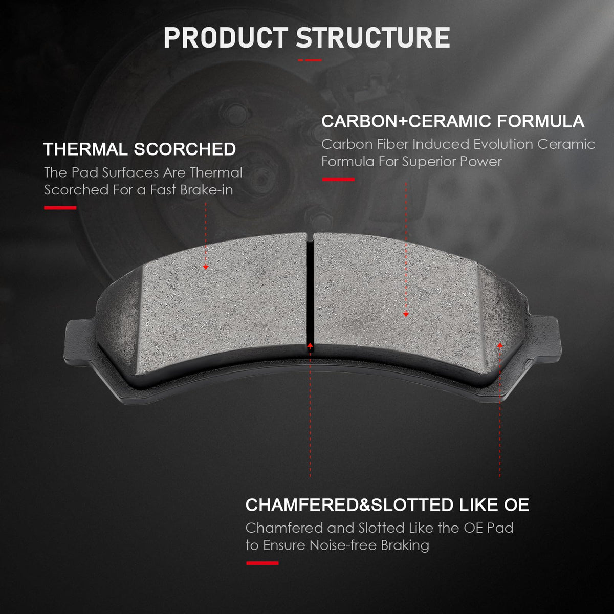 Fitment:2002 For Chevrolet Blazer 4.2L 4157CC 254Cu. In. V6 GAS DOHC Naturally Aspirated1997-2005 For Chevrolet Blazer 4.3L 262Cu. In. V6 GAS OHV Naturally Aspirated2000-2002 For Chevrolet S10 2.2L 2190CC 134Cu. In. l4 FLEX OHV Naturally Aspirated1998-2003 For Chevrolet S10 2.2L 2190CC 134Cu. In. l4 GAS OHV Naturally Aspirated1998-2004 For Chevrolet S10 4.3L 262Cu. In. V6 GAS OHV Naturally Aspirated1998-2000 For Chevrolet S10 ELECTRIC1997-2003 For GMC Jimmy 4.3L 262Cu. In. V6 GAS OHV Naturally Aspirated2004-2005 For GMC Jimmy 4.3L 4294CC V6 GAS OHV Naturally Aspirated2000-2002 For GMC Sonoma 2.2L 2190CC 134Cu. In. l4 FLEX OHV Naturally Aspirated1998-2000 2003 For GMC Sonoma 2.2L 2190CC 134Cu. In. l4 GAS OHV Naturally Aspirated1998-2004 For GMC Sonoma 4.3L 262Cu. In. V6 GAS OHV Naturally Aspirated1998-2000 For Isuzu Hombre 2.2L 2190CC 134Cu. In. l4 GAS OHV Naturally Aspirated2000 For Isuzu Hombre 4.3L 262Cu. In. V6 GAS OHV Naturally Aspirated1998-1999 For Isuzu Hombre 4.3L 4294CC V6 GAS OHV Naturally Aspirated1997-2001 For Oldsmobile Bravada 4.3L 262Cu. In. V6 GAS OHV Naturally AspiratedPackage Including:4 Ceramic Brake Pads