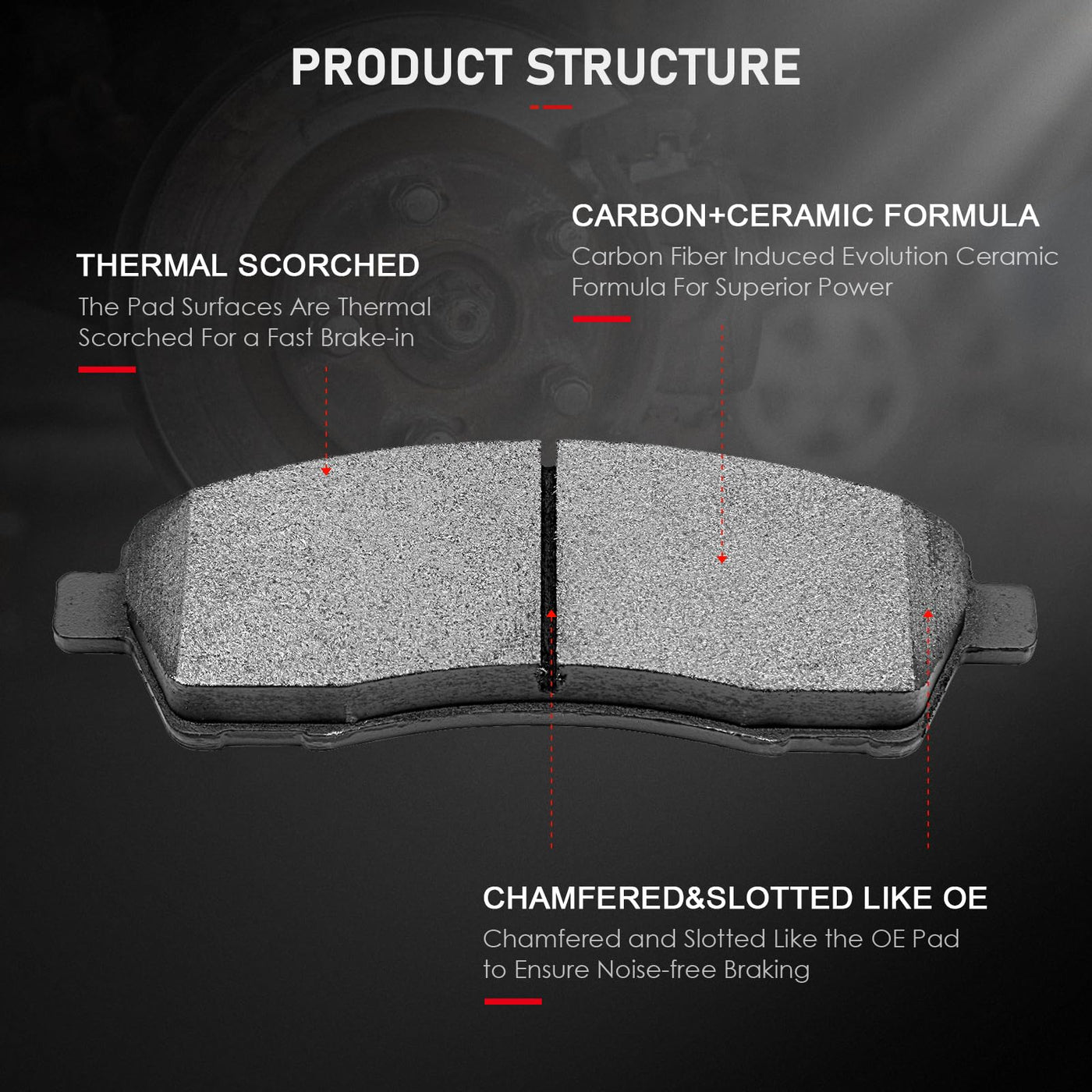 Cciyu D824 D757 8Pcs Front & Rear Ceramic Brake Pads Kit - 2000-2005 Ford Excursion, 1999-2004 Ford F-250 & F-350 Super Duty