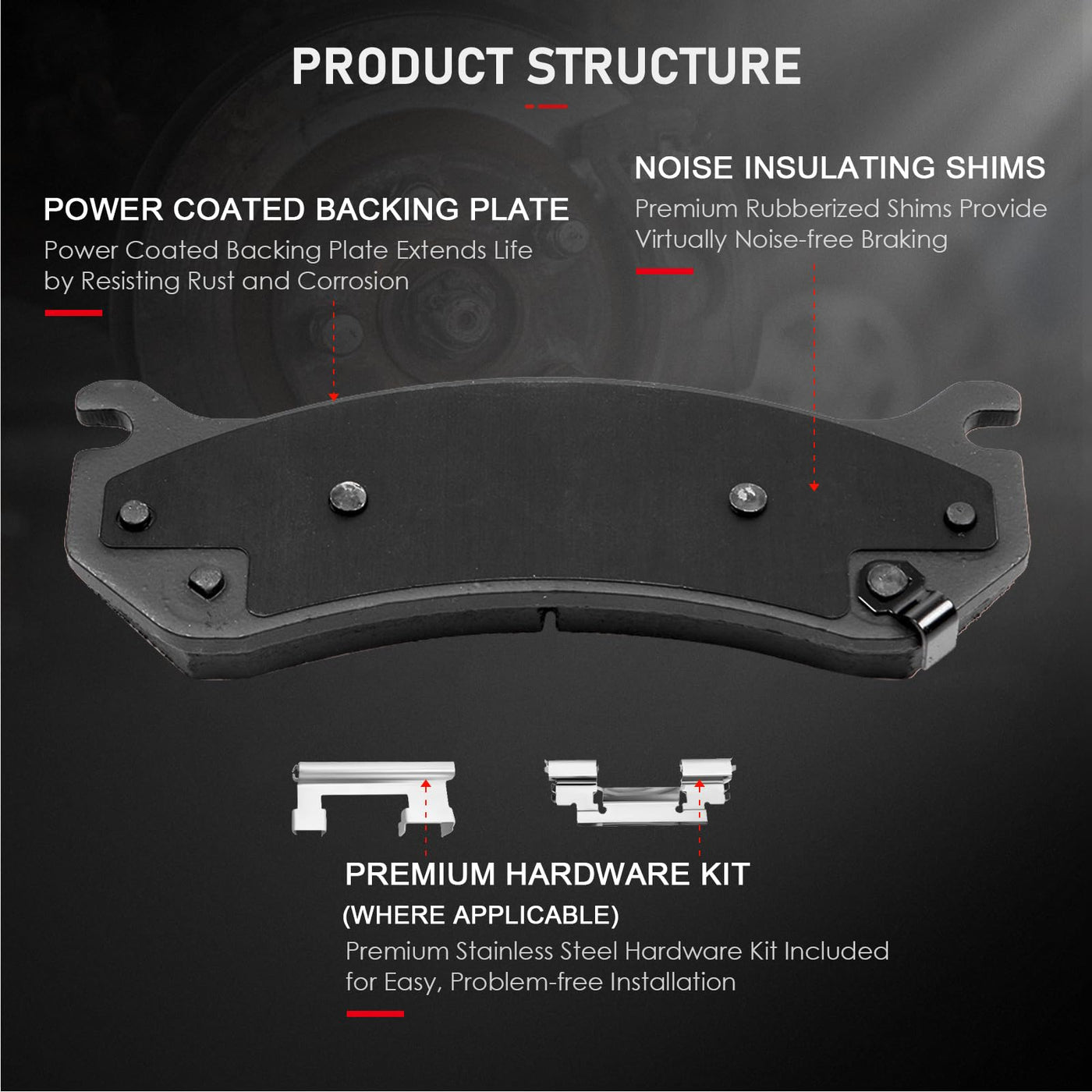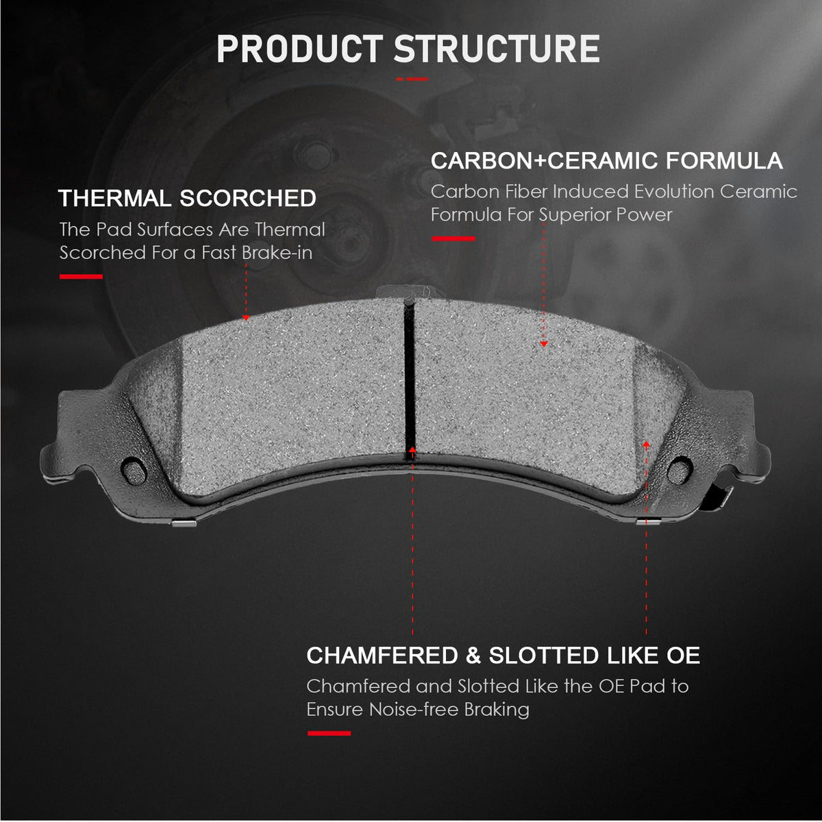 Fitment:2002-2006 For Cadillac Escalade2003-2006 For Cadillac Escalade ESV2002-2006 For Cadillac Escalade EXT2002-2006 For Chevrolet Avalanche 15002001-2005 For Chevrolet Silverado 15002000-2006 For Chevrolet Suburban 15002000-2006 For Chevrolet Tahoe2001-2006 For GMC Sierra 15002000-2006 For GMC Yukon2000-2006 For GMC Yukon XL 1500Package Including:8 Ceramic Brake Pads