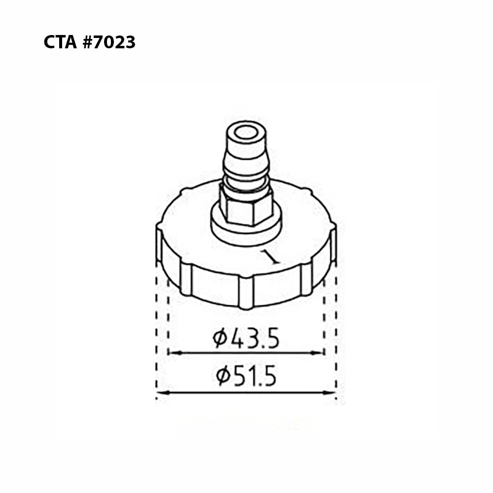 Q: What are the dimensions of the CTA Tools 7023 Master Cylinder Adapter?A: The adapter has an outer diameter (O.D.) of 51.5mm and an inner diameter (I.D.) of 43.5mm, making it suitable for specific hydraulic applications.