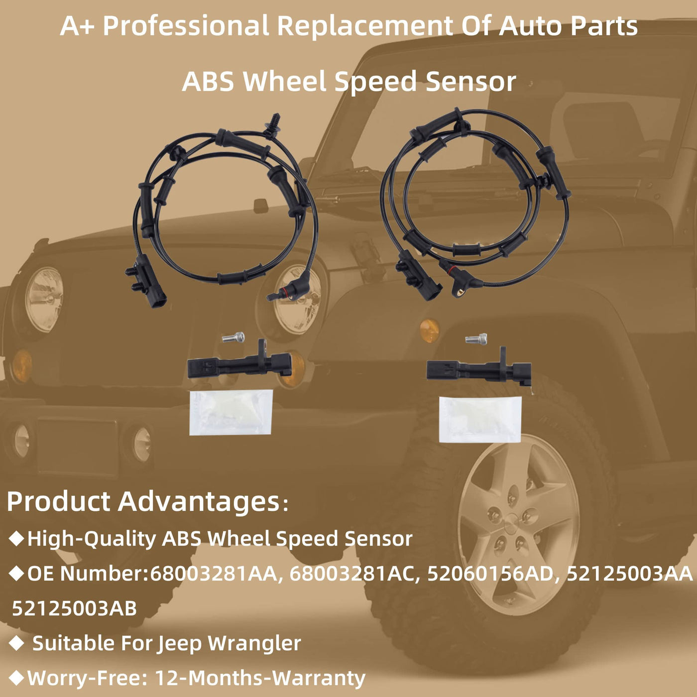 Dasbecan Front And Rear Abs Wheel Speed Sensor Compatible With Jeep Wrangler 3.6L 2012-2017,Jeep Wrangler 3.8L 2007-2011 Replace