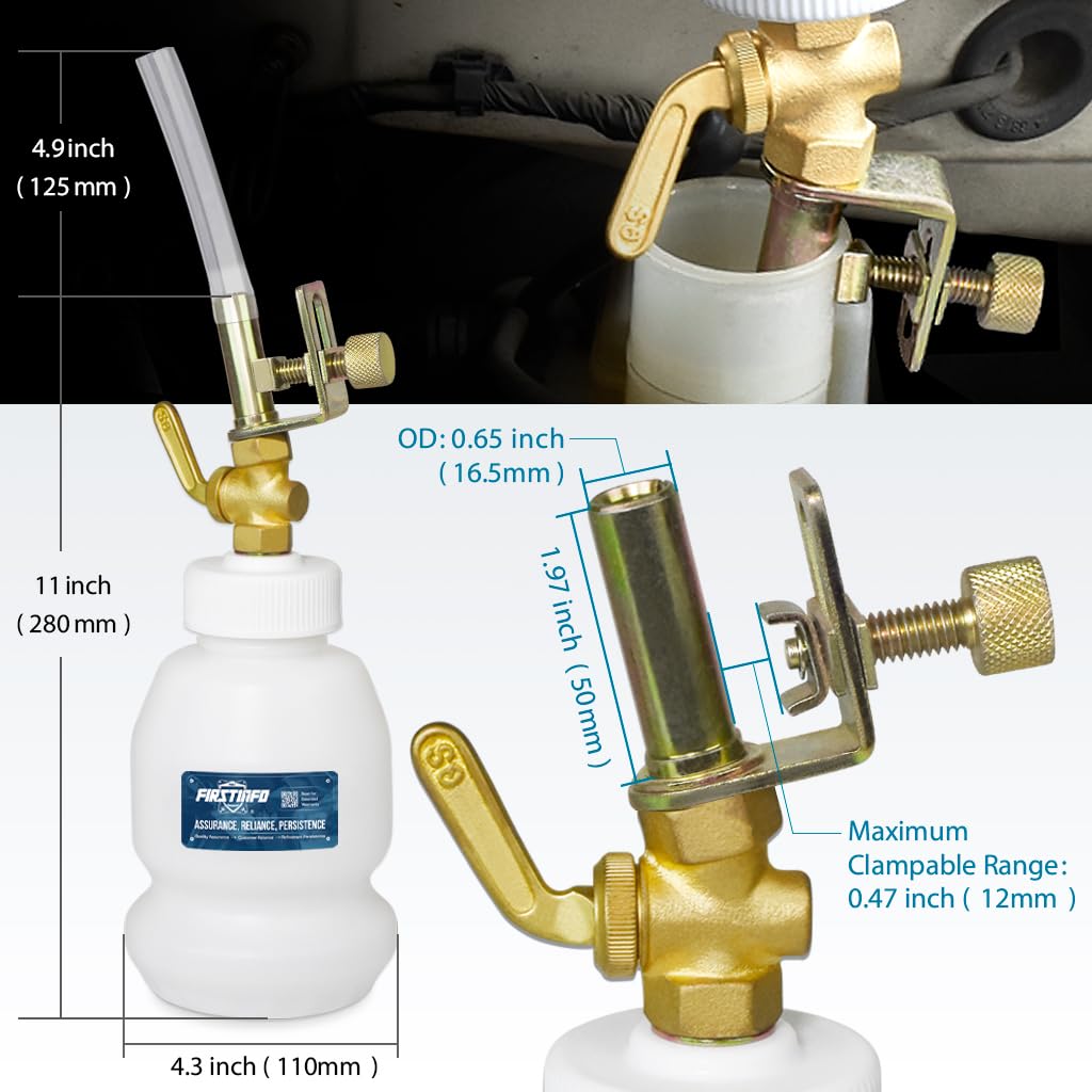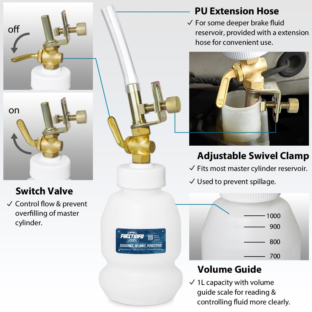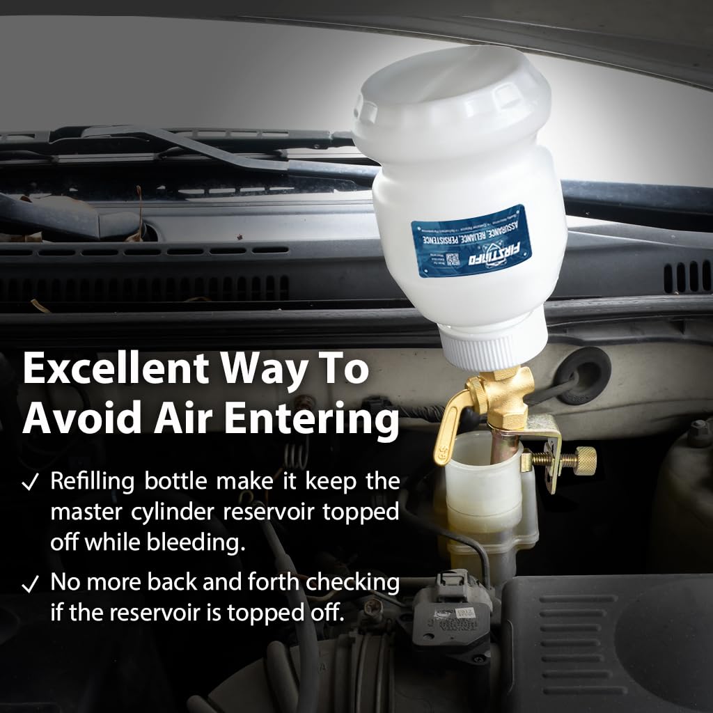 Q: Is the FIRSTINFO A1155 Brake Fluid Dispensing Bottle compatible with all master cylinder reservoirs?A: Yes, the universal design of the FIRSTINFO A1155 allows it to fit most master cylinder reservoirs, helping to prevent spills during use.