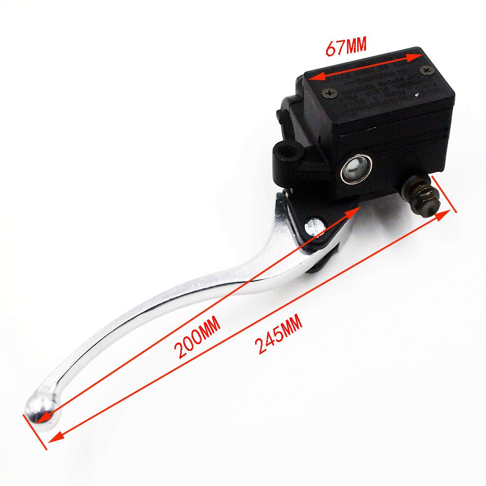 ?Size: Banjo Bolt: 10x1.25mm Handlebar Size: 7/8" Piston Bore: 14mm MC Outlet: facing front tire cirection