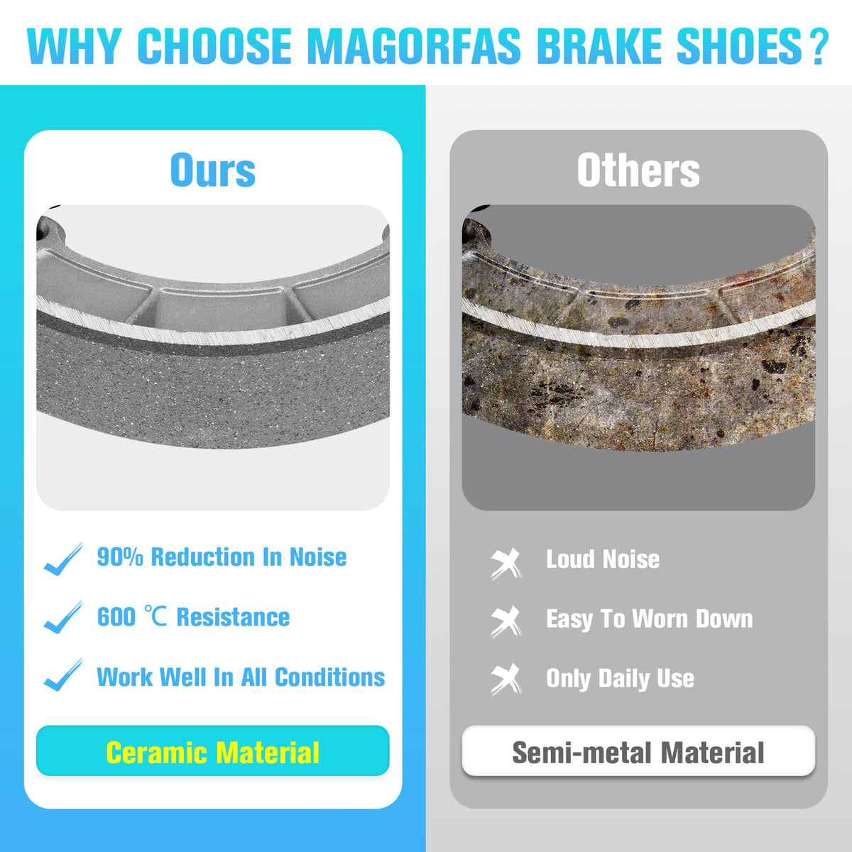 Magorfas Brake Shoes Are Made Of High Temperature Resistance Ceramic And Aluminum Alloy Materials To Provide Longer Service Life, Shorter Braking Time, And A More Comfortable Driving Experience.