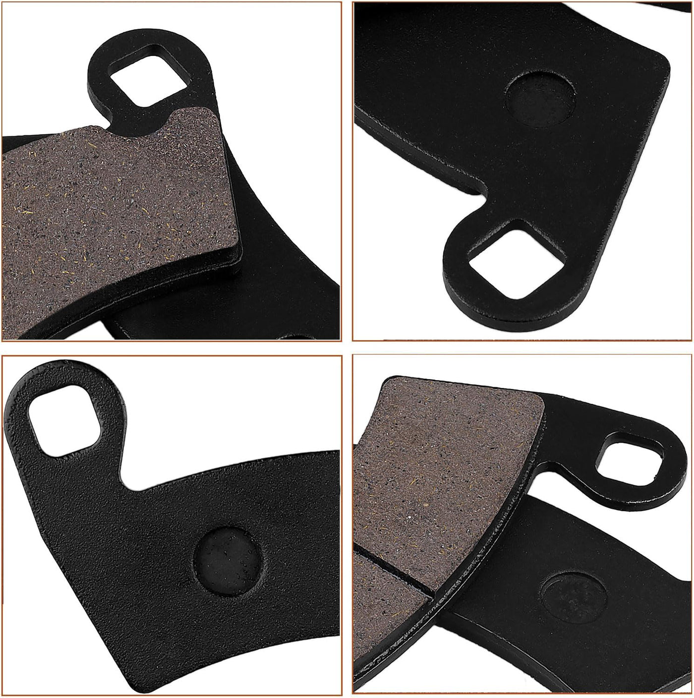 Q: What material are these brake pads made from?A: The Front & Rear Brake Pads are made from semi-metallic material, which provides durability and excellent braking performance in various conditions.