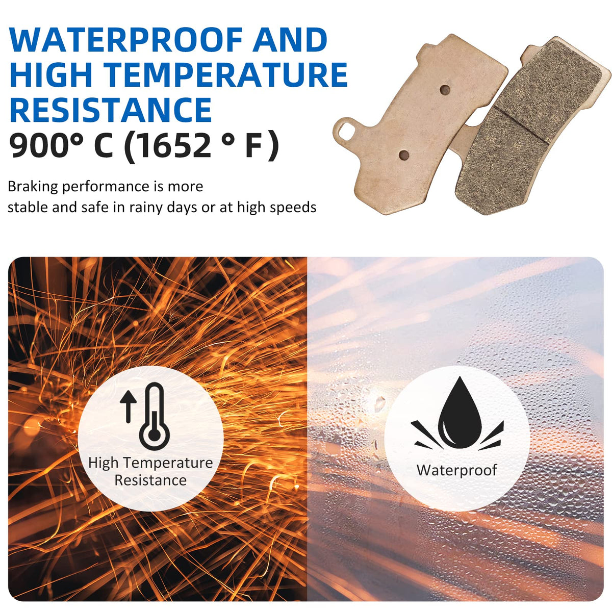 Q: What materials are used in the construction of these brake pads?A: The brake pads feature a copper plating base, which is sintered using a copper and tin formula compound. This design ensures excellent heat dissipation and performance, even in poor conditions.