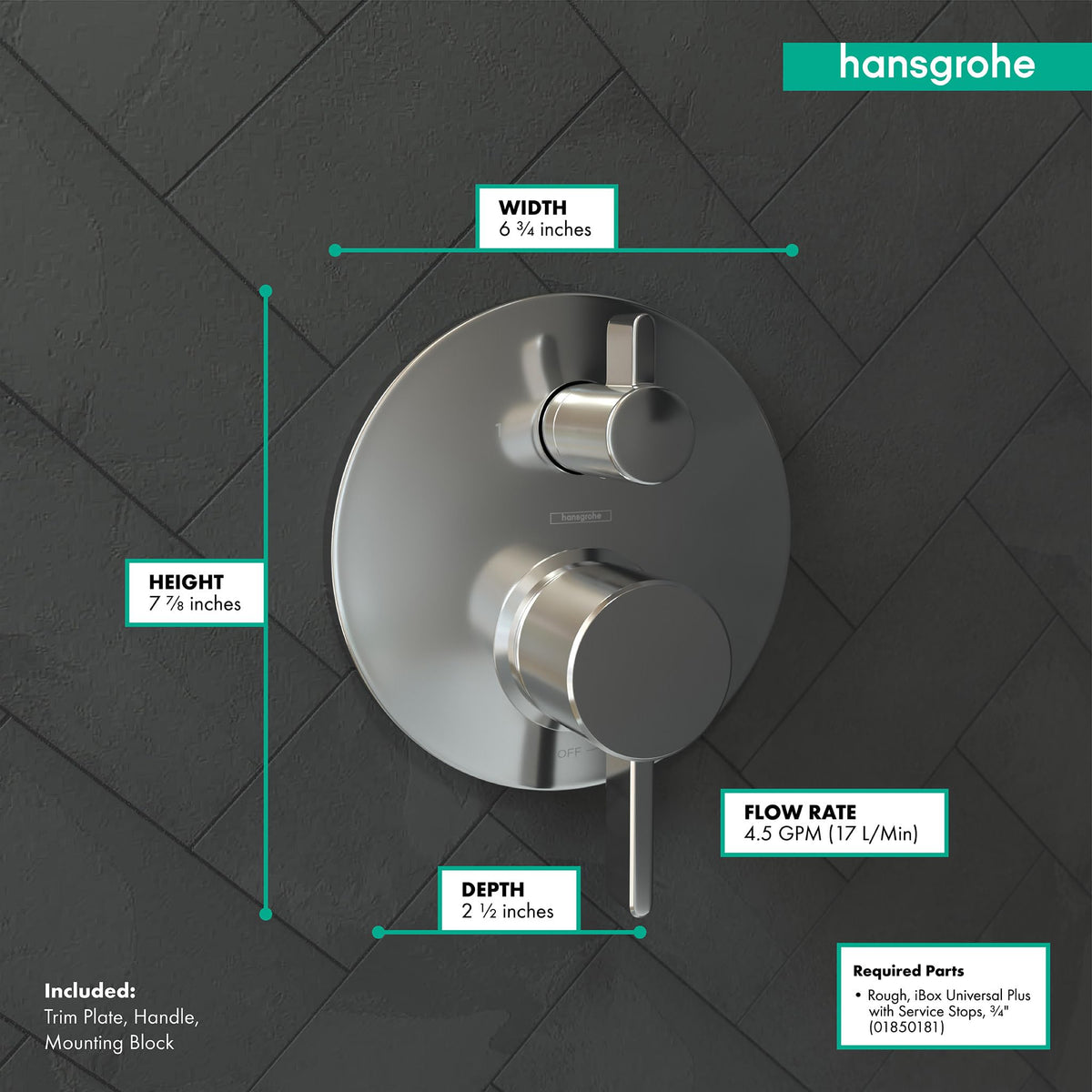 Q: Is the Ecostat trim compatible with any existing plumbing systems?A: This trim requires the iBox Universal Plus Rough (Part No. 01850181) for installation, which ensures it works seamlessly with your plumbing system.