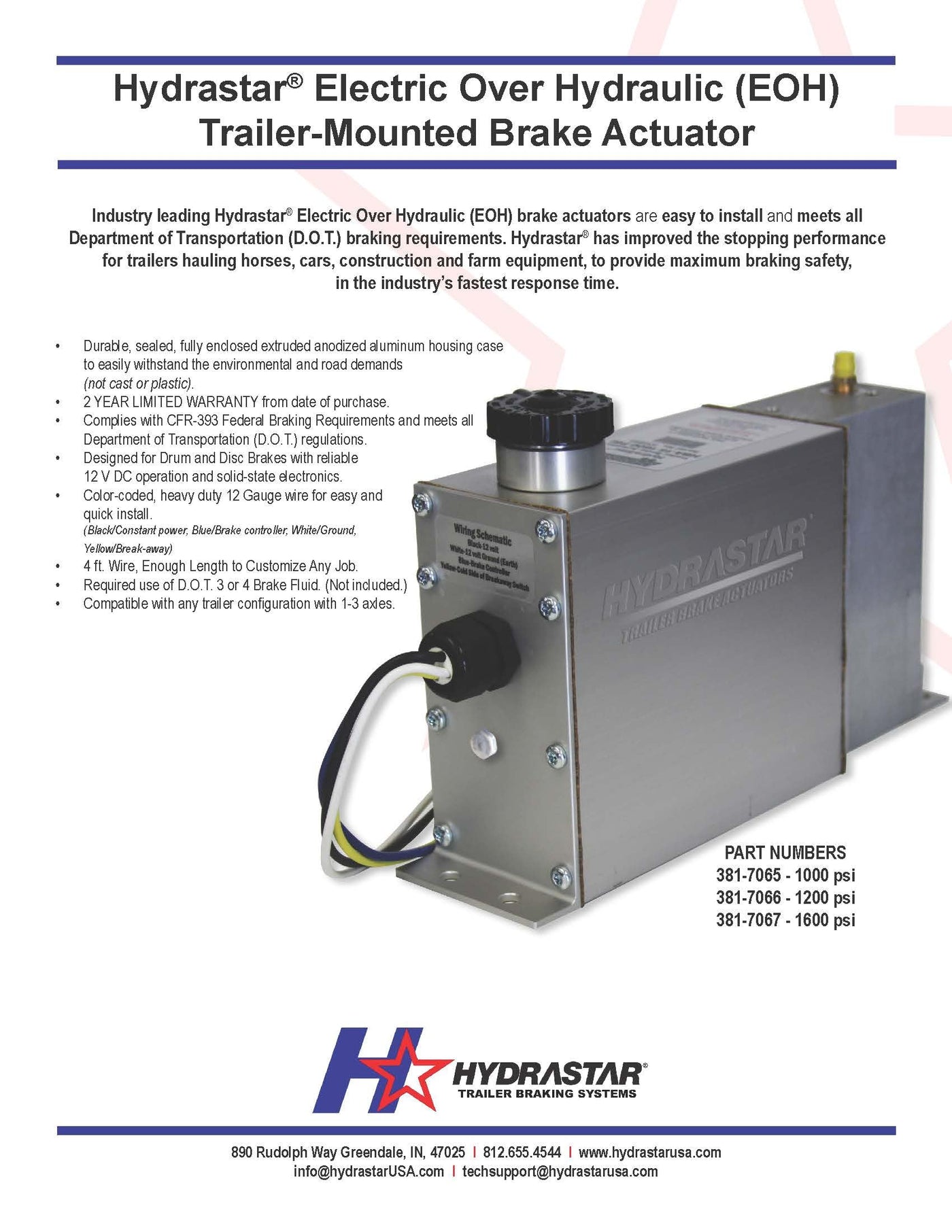 Industry Leading Hydrastar Actuators Are Easy To Install And Meet All Department Of Transportation (D.O.T.) Braking Requirements. Hydrastar Has Improved The Stopping Performance For Trailers Hauling Horses, Cars, Construction And Farm Equipment, To Provide Maximum Braking Safety, In The Industry'S Fastest Response Time.