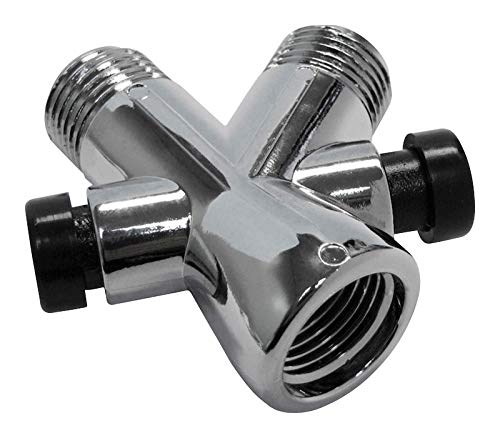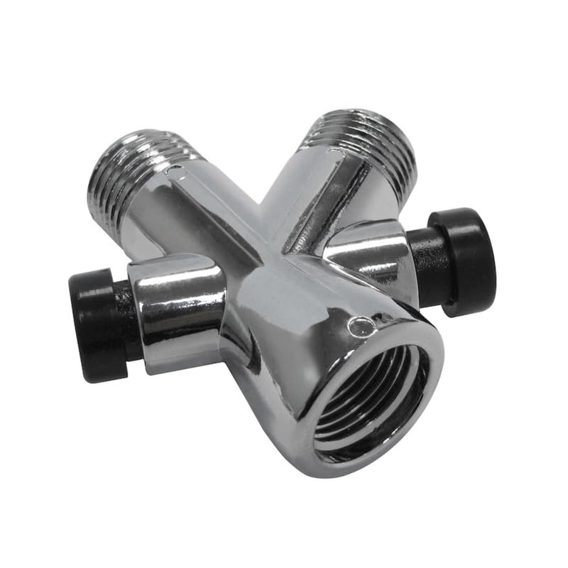 Plumb Pak shower arm diverter chrome-plated plastic connects personal shower and shower head. Other features include plastic construction, chrome plated, and 1/2-Inch FIP by 1/2-Inch mip by 1/2-Inch mip.