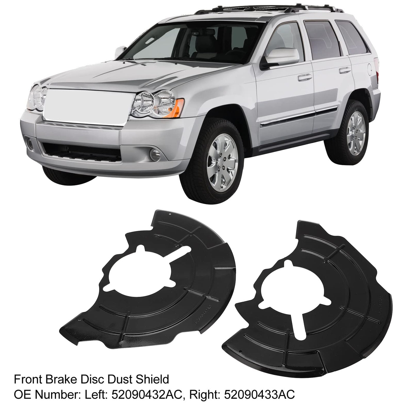 1. OE Number: The left referencing OE number of this front brake disc dust is 52090432AC, the right referencing OE number is 52090433AC.2. Fitment: The brake dust disc backing plate is a replacement for GRAND CHEROKEE 2005?2010, replacement for COMMANDER 2006?2010.3. Function: Prevent splashing pebbles and debris from damaging the brake disc, and effectively resist the damage to the brake disc by large impacts in high speed.4. Strong : Made of high strength iron, has high hardness, wear , not easy to deform, break or bend, to provide strong for your brake discs.5. Replacement: Designed to match the fit and function of the stock brake backing plate on specific vehicle applications, fit for your vehicle.Spec:Item Type: Front Brake Disc Dust OE Number: Left: 52090432AC, Right: 52090433ACMaterial: IronFitment:Replacement for GRAND CHEROKEE 2005-2010Replacement for COMMANDER 2006-2010packing list:1 x Pair of Front Brake Disc Dust (Left Right)Note:Please double check the part number of your item, matching information is for reference only.If you are unsure of the item, please us before buying to avoid unnecessary return, thanks!