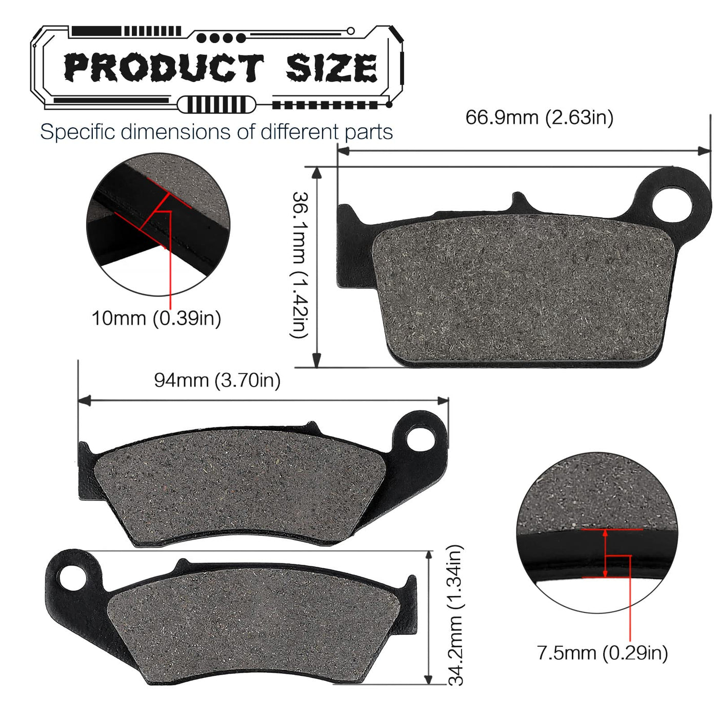 Q: What is included in the brake pad package?A: The package includes one pair of front brake pads and one pair of rear brake pads, providing everything you need for both ends of your motorcycle.