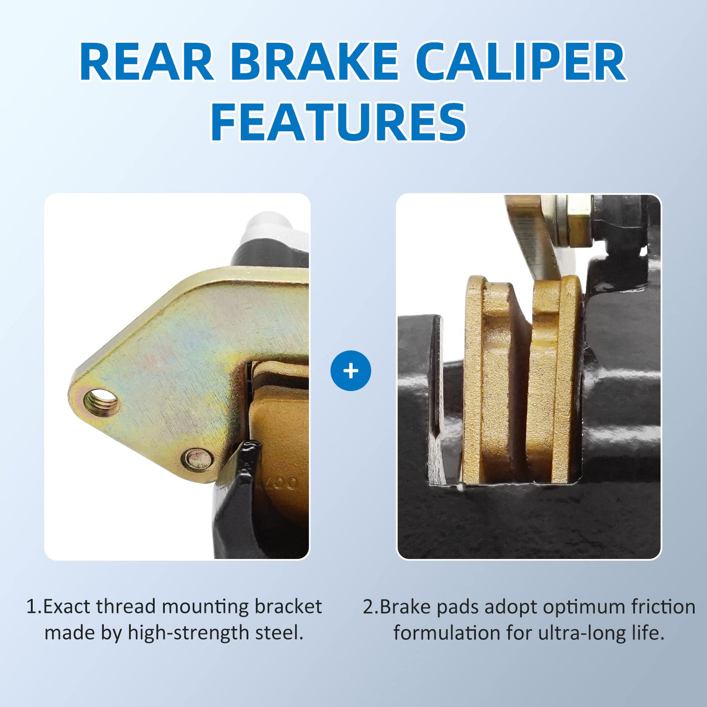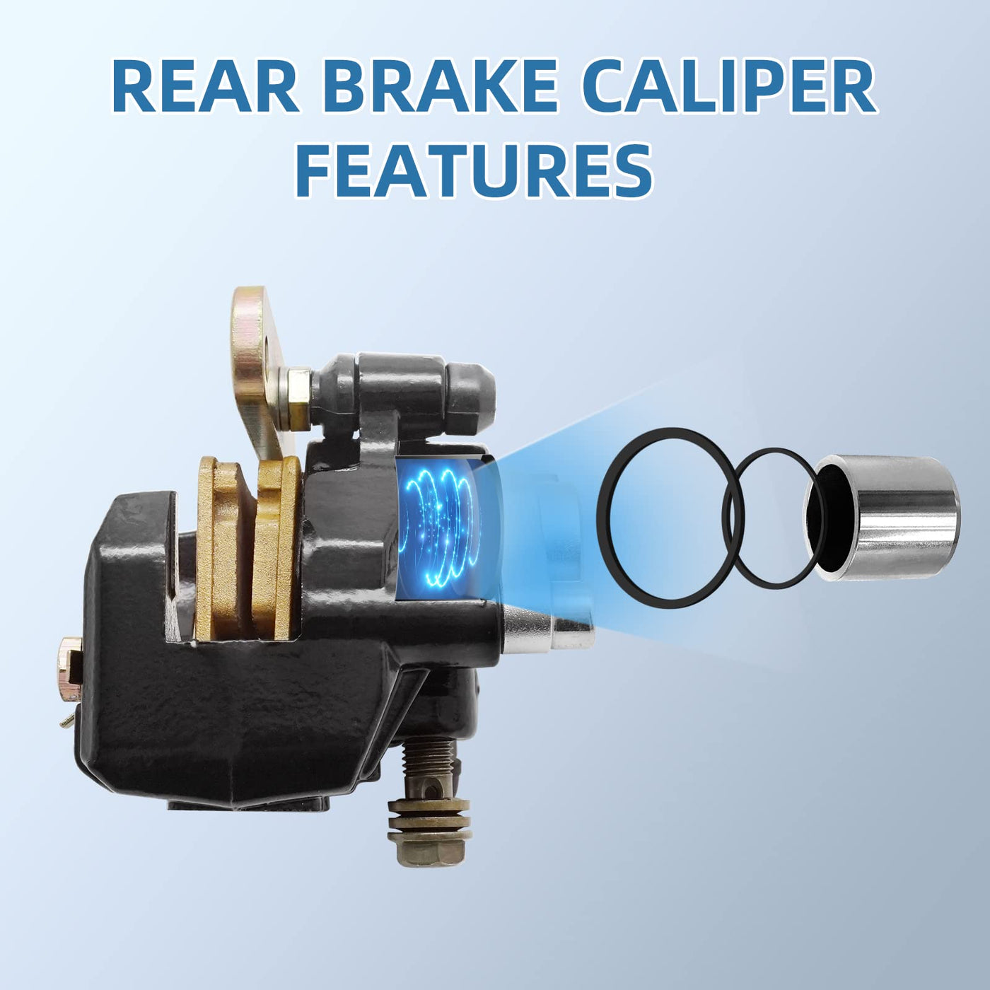 Q: What materials are used in the construction of the brake caliper?A: The rear brake caliper is constructed from high-quality materials that provide durability and reliability, making it easy to install and ensuring long-lasting performance.