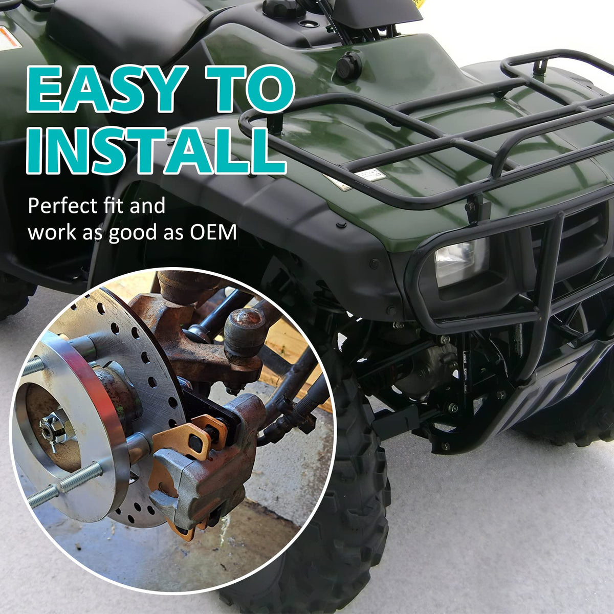 Q: How do I install the M MATI Brake Pads?A: Installation of the M MATI Brake Pads can be done by removing the old brake pads from your ATV and replacing them with the new ones. The package includes springs and O-rings that help improve stability and reduce noise. If you're not comfortable with DIY installation, it's recommended to consult a professional mechanic.