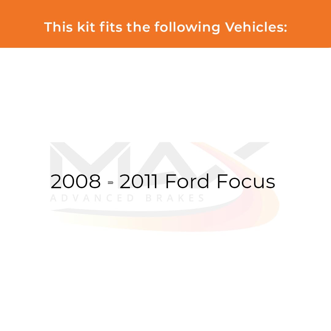 Q: What vehicles are compatible with the Max Advanced Brakes Front Brake Kit?A: The Max Advanced Brakes Front Brake Kit is specifically designed for the 2008, 2009, 2010, and 2011 Ford Focus. It is crucial to confirm your vehicle's details, including Year, Model, and Sub-Model, before purchasing to ensure proper fitment.
