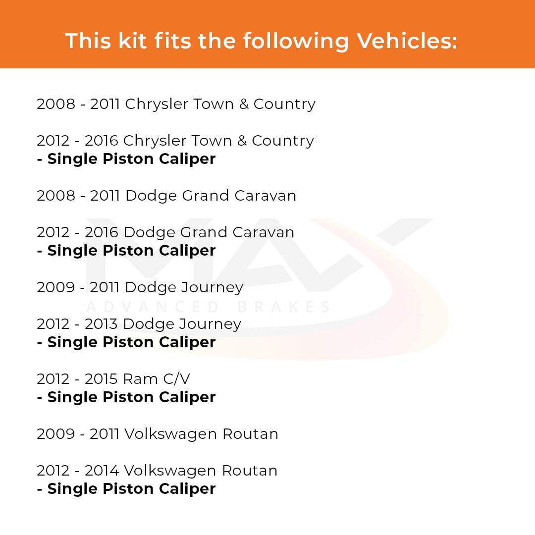Max Advanced Brakes Front Brake Kit For 2008-2016 Dodge Grand Caravan Chrysler Town & Country Single Piston Caliper Replacement Premium Oe Disc Brake Rotors And Ceramic Brake Pads