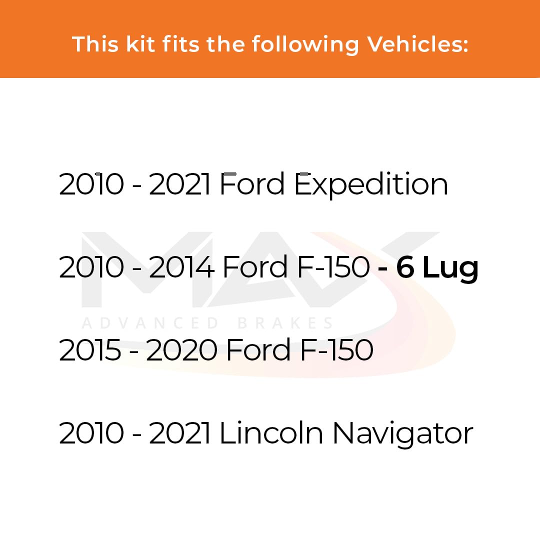 Max Advanced Brakes Front Brake Kit For 2010-2020 Ford F150 6Lug 2010-2021 Ford Expedition Lincoln Navigator Replacement Cross Drilled Disc Brake Rotors And Ceramic Brake Pads
