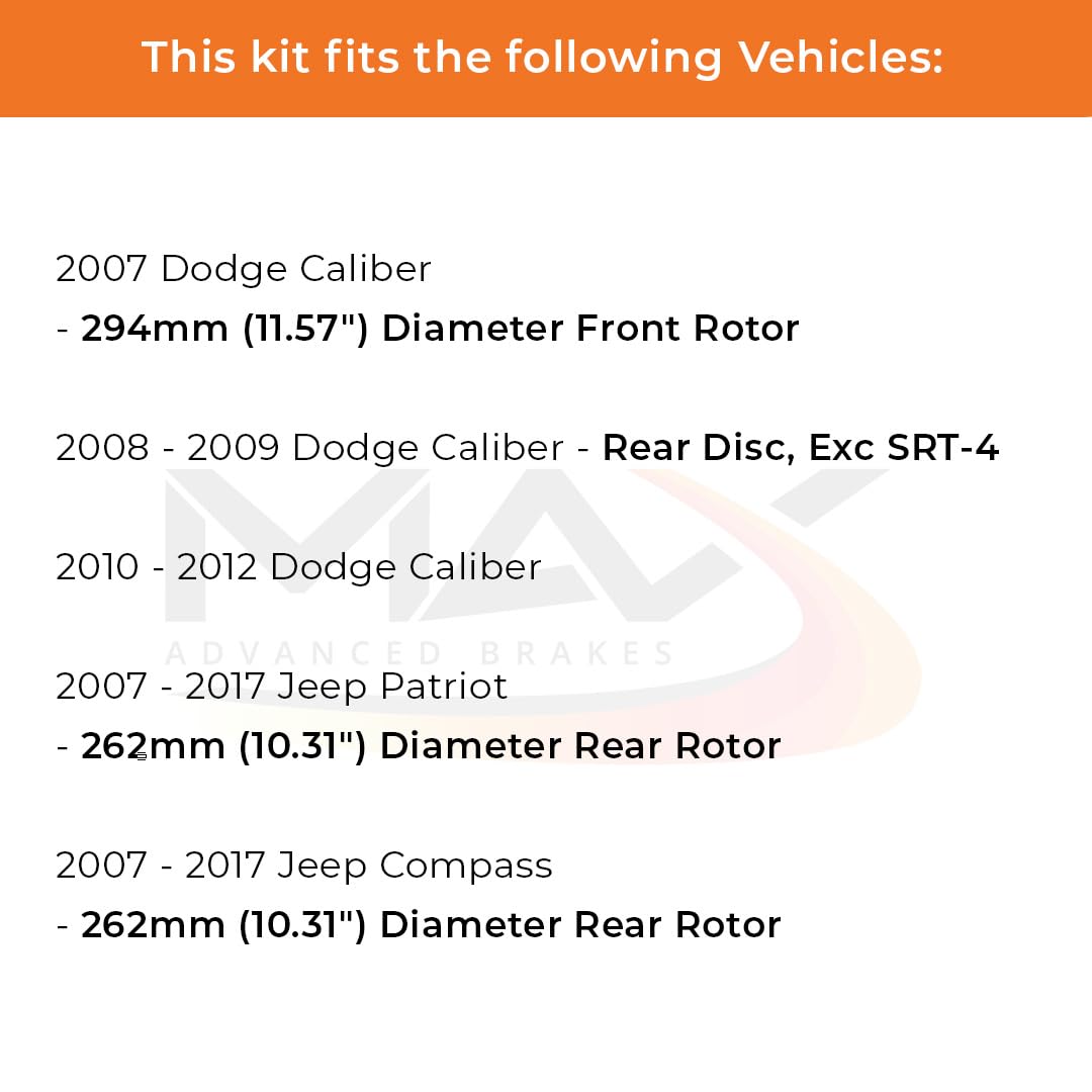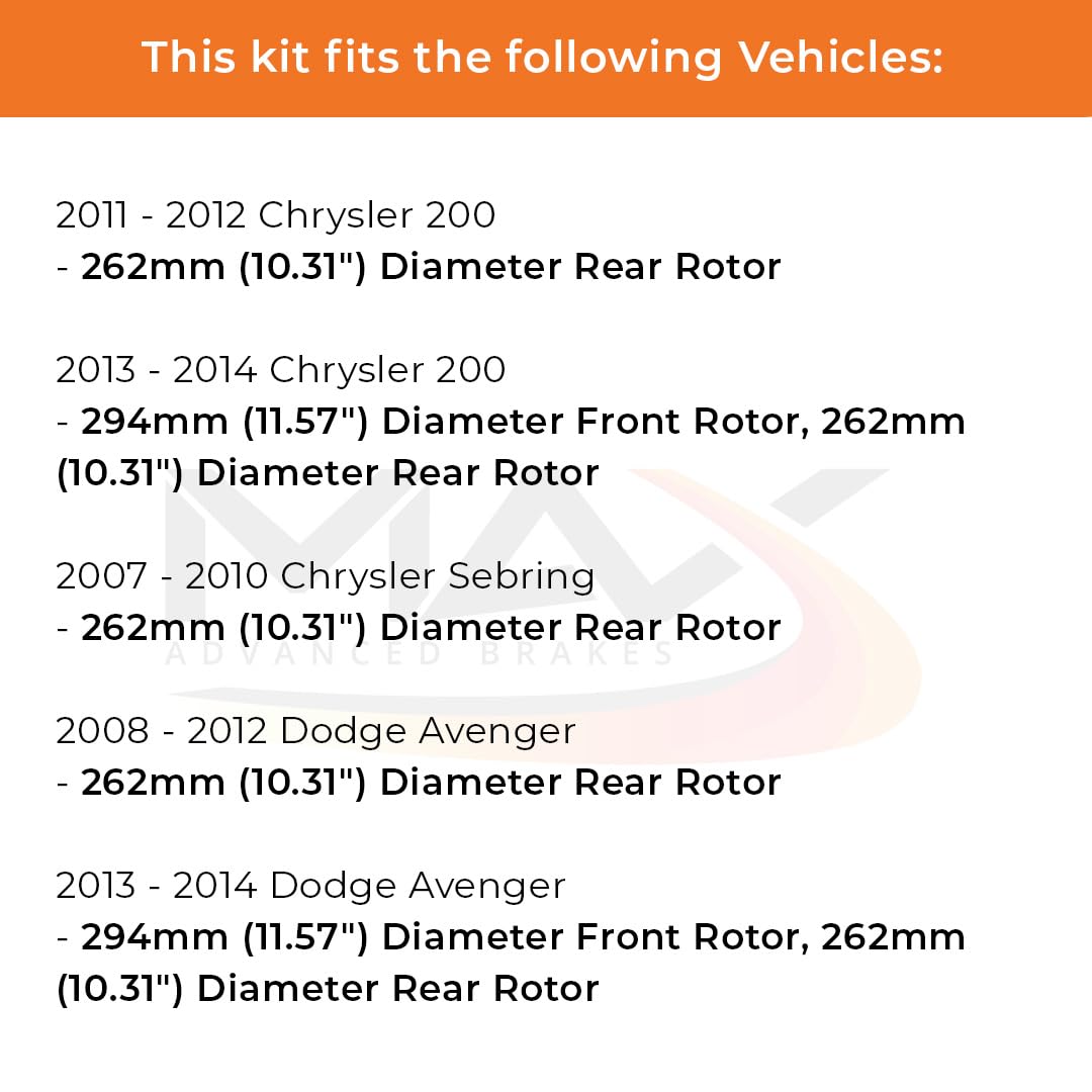 Max Advanced Brakes Front & Rear Brake Kit Compatible With 2011 2012-2014 Chrysler 200 11.57'' Frt & 10.31'' Rear Rotor Replacem