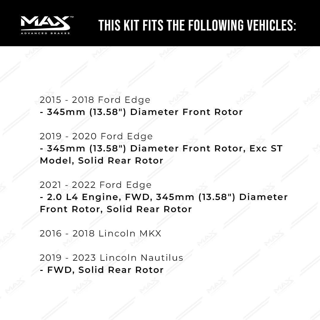 Max Advanced Brakes Front & Rear Brake Kit Compatible With 2015-2017 2018 2019-2022 Ford Edge W/13.58'' Dia Front Rotor Replacem