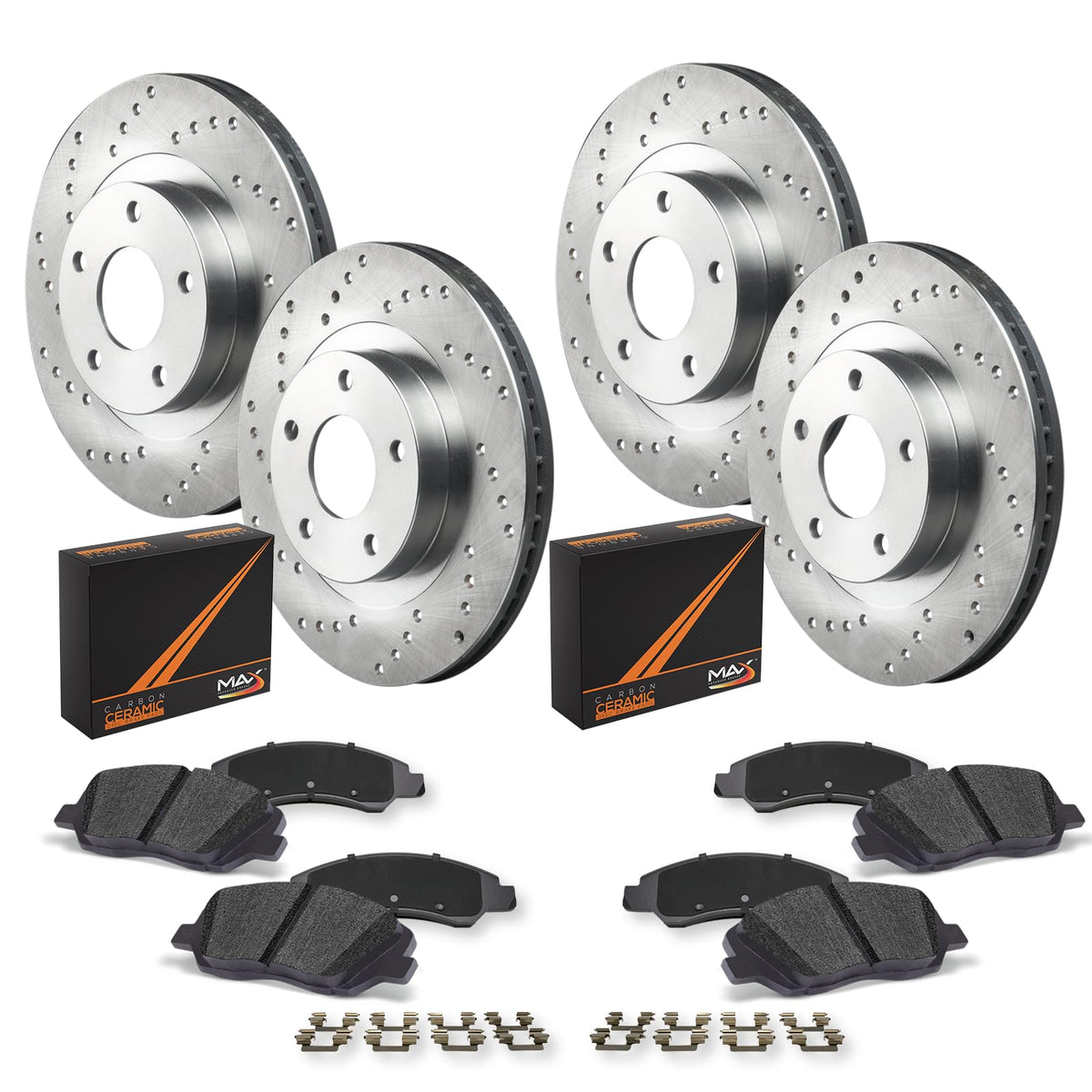 Max Advanced Brakes Front & Rear Brake Kit For 2017 2018 2019 2020 Mitsubishi Outlander Awd Replacement Cross Drilled Disc Brake Rotors And Ceramic Brake Pads