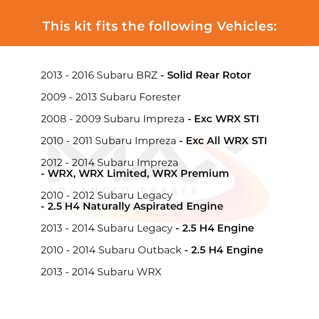 Max Advanced Brakes Rear Brake Kit Compatible With 2008-2011 2012 2013 2014 Subaru Impreza Forester Outback Legacy Brz Replaceme