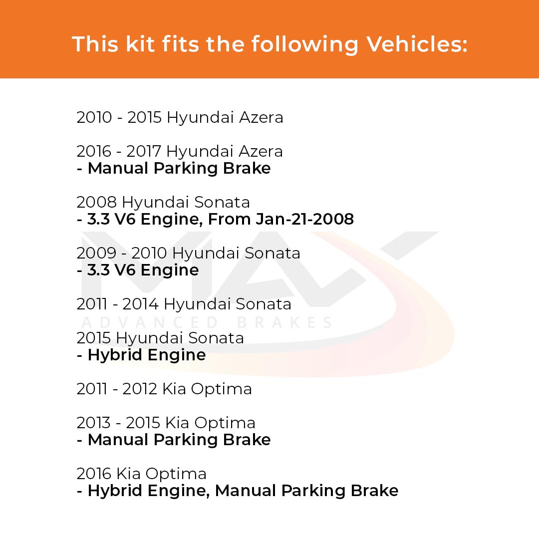 Max Advanced Brakes Rear Brake Kit Compatible With 2008-2013 2014 2015 Hyundai Sonata Azera Compatible With Kia Optima Replaceme