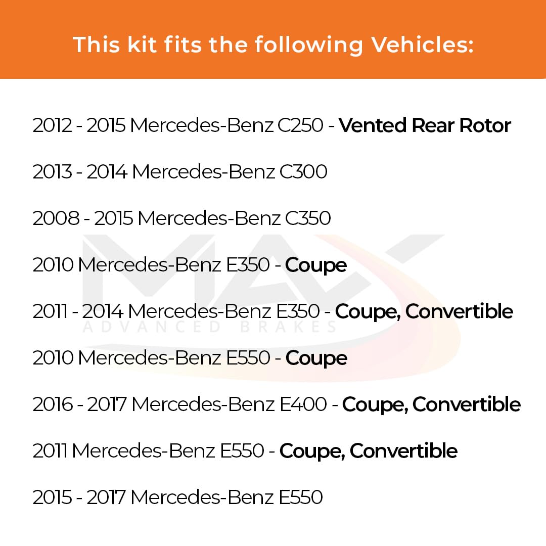 Max Advanced Brakes Rear Brake Kit Compatible With 2008-2013 2014 2015 Mercedes-Benz C350 C250 C300 E350 E550 E400 Replacement C