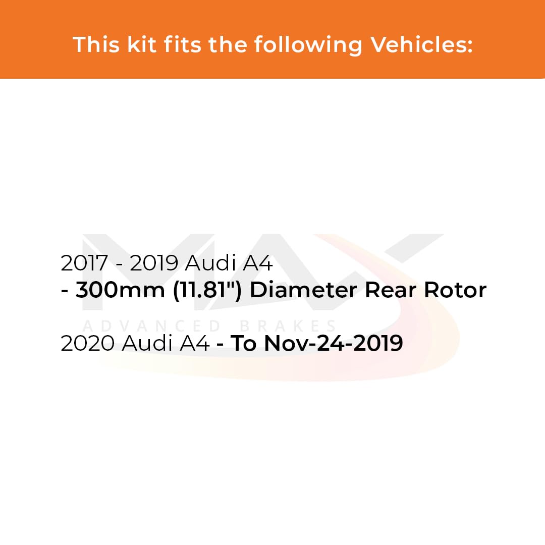 Max Advanced Brakes Rear Brake Kit Compatible With 2017 2018 2019 2020 A4 W/11.81 '' Rear Rotor Replacement Premium Oe Disc Brak