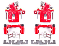 Q: What materials are used in the construction of these calipers?A: These calipers feature an electrostatic high-heat powder coat for rust and corrosion resistance, along with high temperature EPDM rubber dust boots and premium silicone lubricant for enhanced performance.