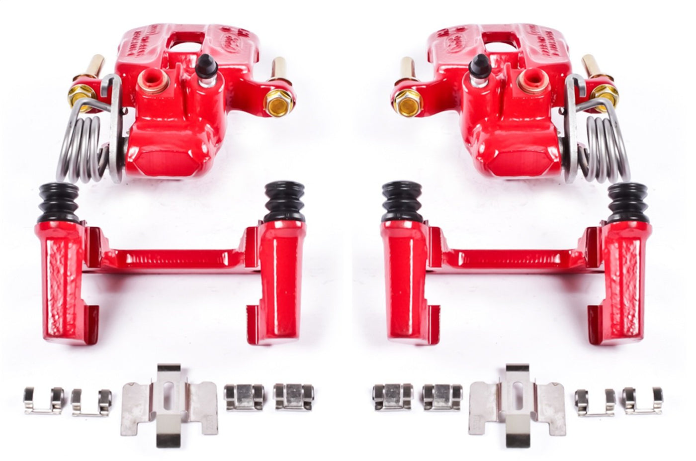 Q: What is included with the Power Stop S4824 calipers?A: Each caliper set comes with new seals, caliper guide pins, dust boots, bleeder screws, stainless-steel brake pad abutment clips, and mounting brackets for a complete installation.