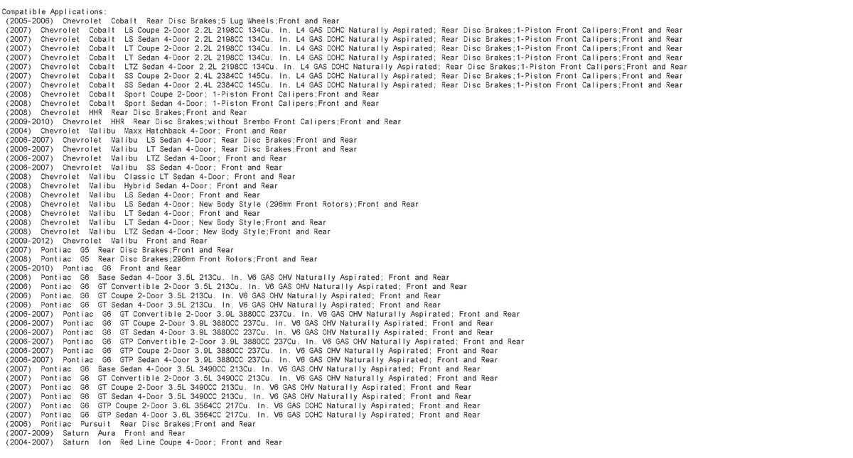 (2005-2006) Chevrolet Cobalt Rear Disc Brakes; 5 Lug Wheels