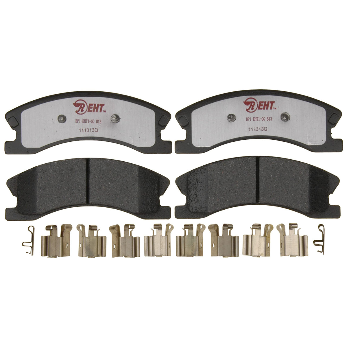 Q: What material is used in the Raybestos EHT brake pads?A: These brake pads are made from high-quality ceramic material, which provides excellent braking performance, reduced noise, and lower dust production compared to traditional brake pads.