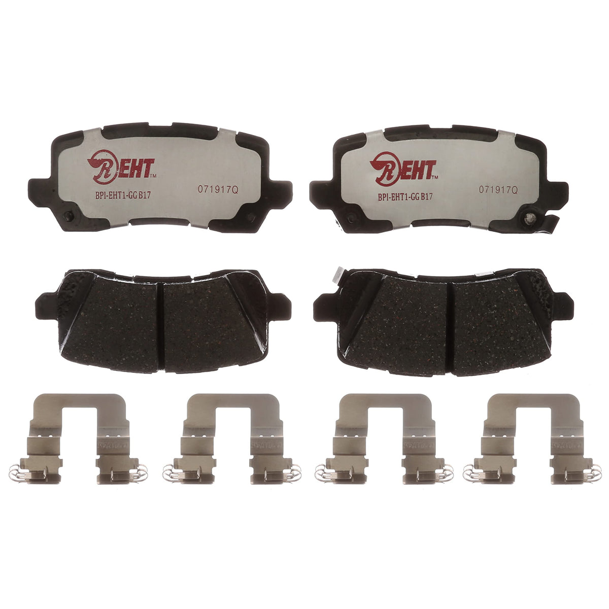 Q: What materials are used in the construction of these brake pads?A: These brake pads feature a unique Enhanced Hybrid Technology formulation that combines both ceramic and semi-metallic materials, providing superior stopping power and durability.