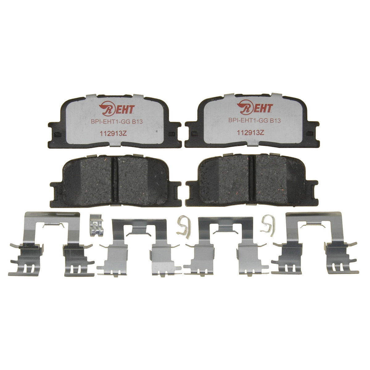Raybestos Element3 Replacement Front & Rear Disc Brake Pads Sets come with Hardware features Enhanced Hybrid Technology formulations that combines the best attributes of both ceramic and semi-metallic all in one brake pad. Key features of this top-of-the-line braking technology includes 20 to 25% stopping power during aggressive braking and 35% improved pad wear and durability. Additionally, five layered shims with electronic wear sensors promote quiet stopping in a wide variety of temperature ranges. For easy installation, abutment clips, piston clips, spreader springs and anti-rattle clips are included. With more than one million miles of on-road testing conducted across domestic, import, light truck and fleet vehicles, drivers looking for unprecedented braking control and stopping power should look no further than Enhanced Hybrid Technology brake pads.